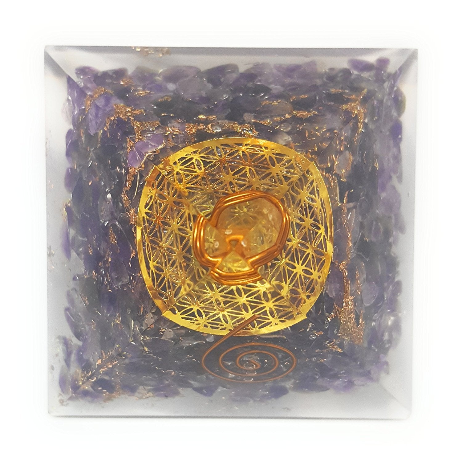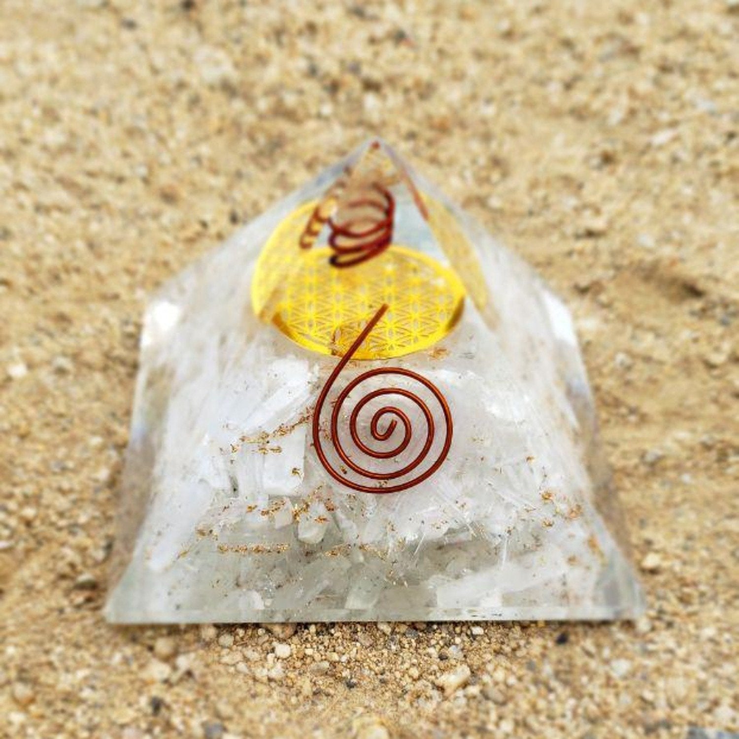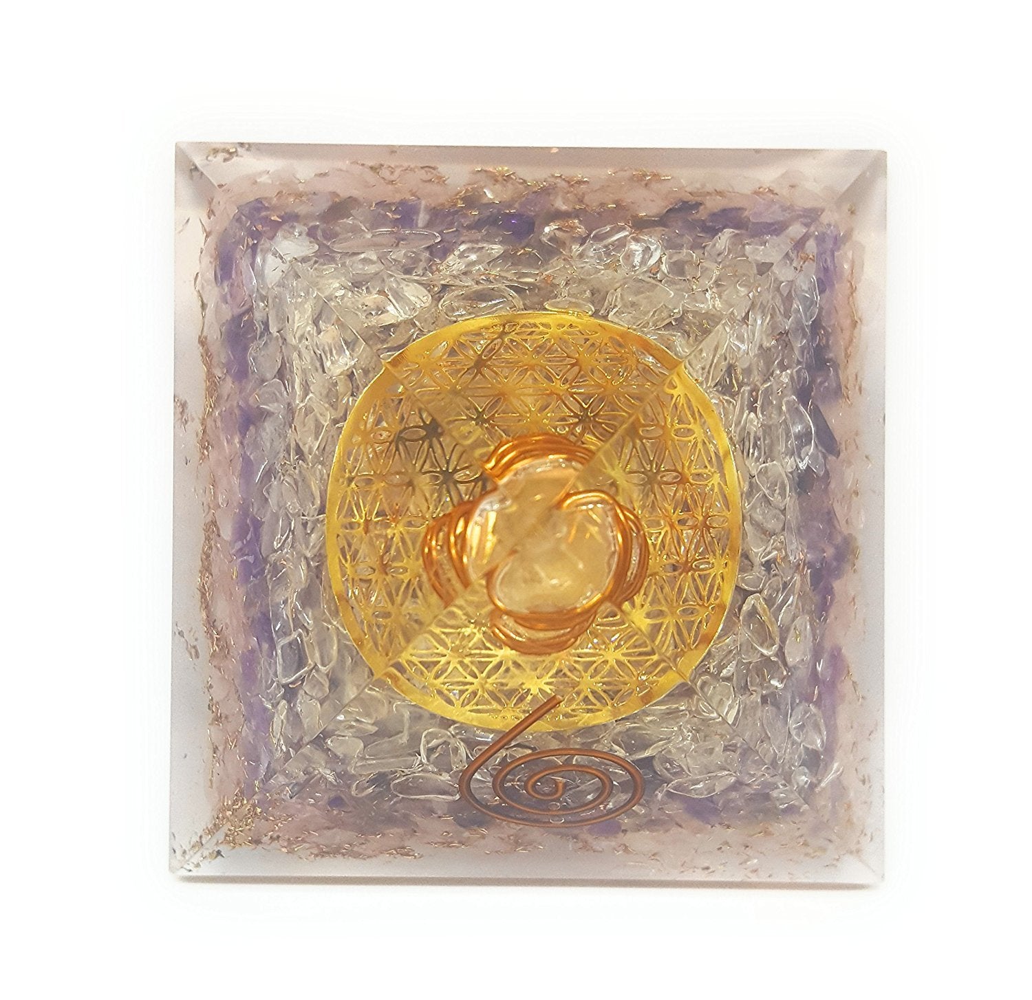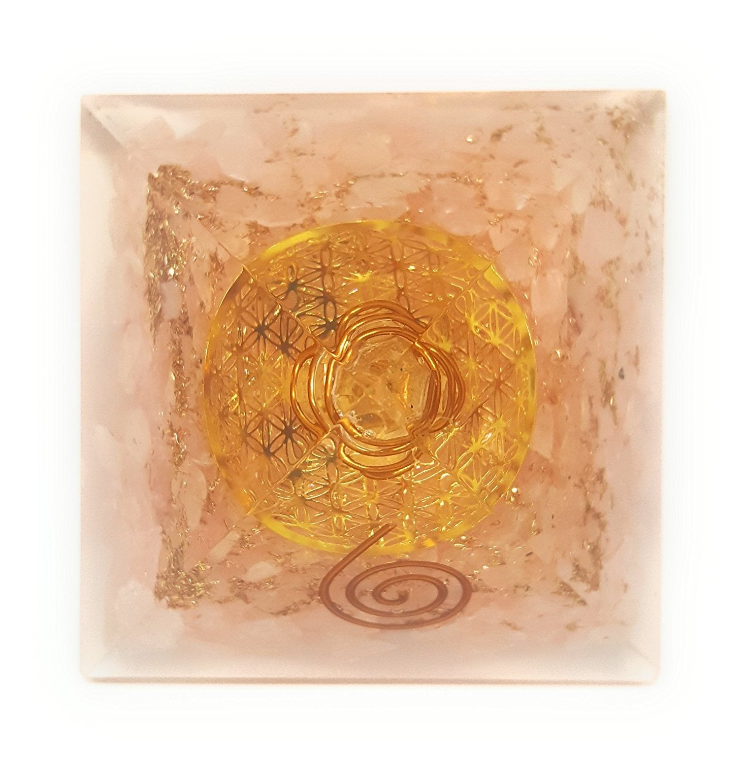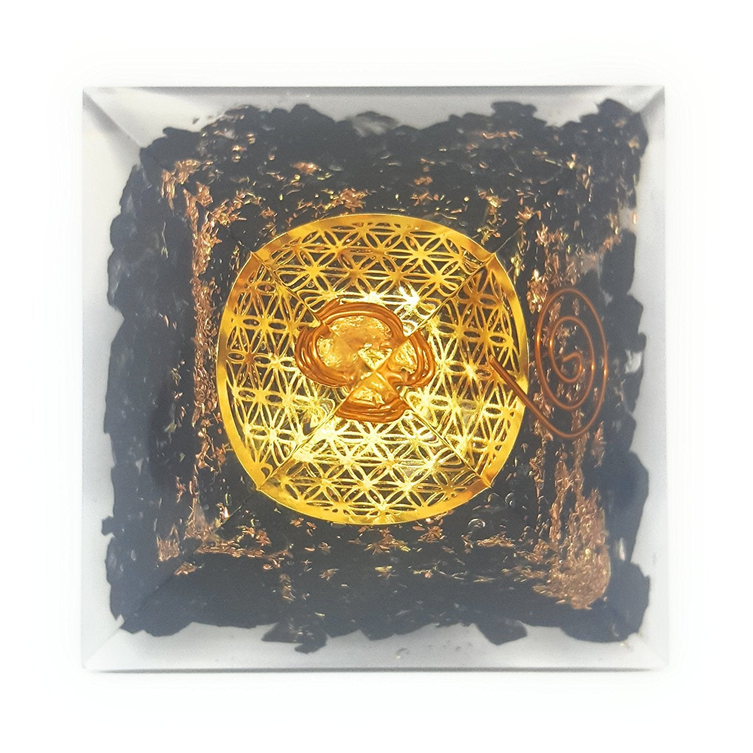 White Whale Reiki Healing Crystal Energy Generator Pyramid The Flower Of Life Symbol Orgonite Energy Generator Stone