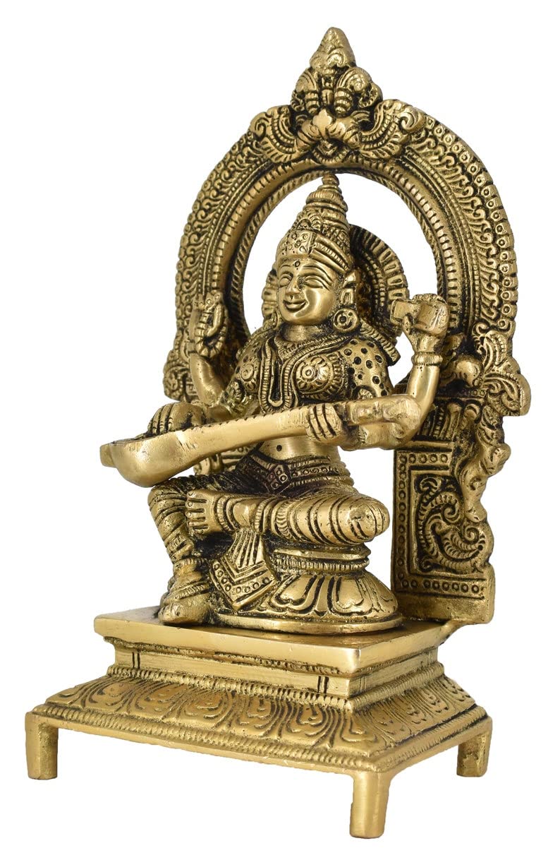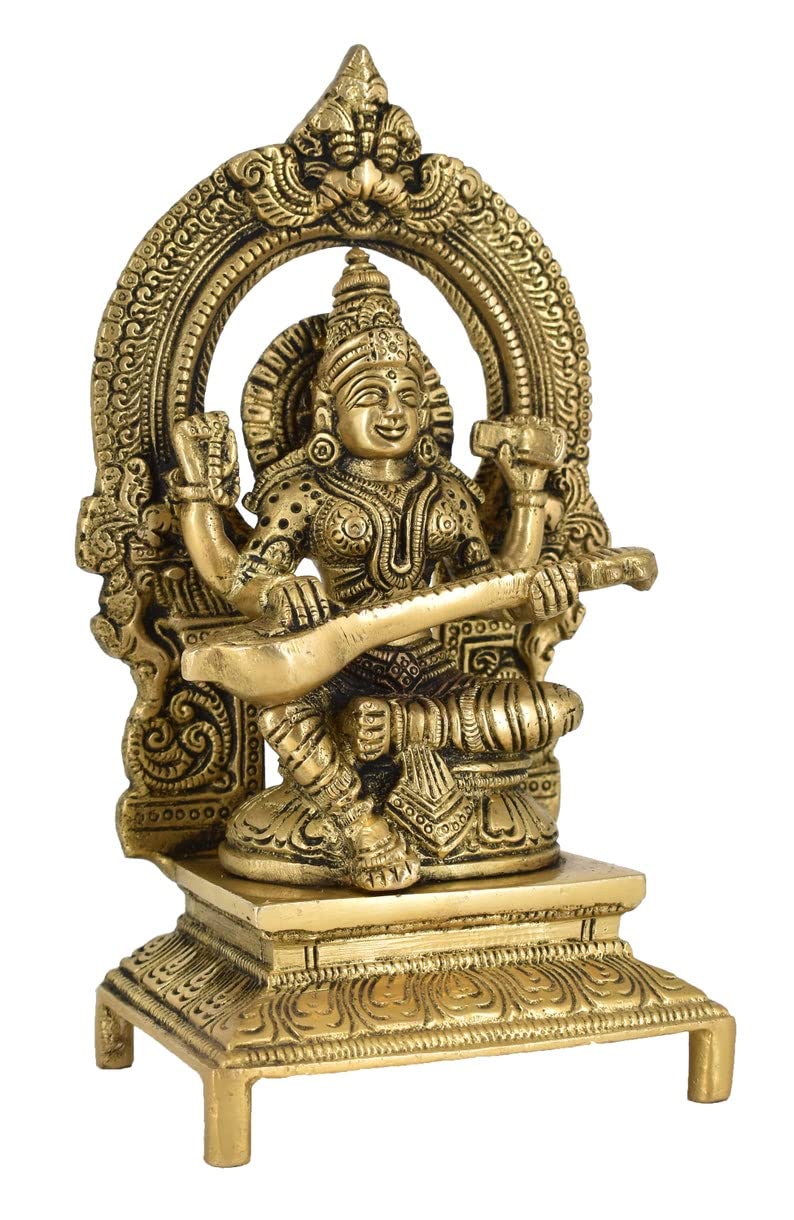 White Whale Brass Goddess Saraswati Statue Showpiece Idol for Home Décor and Gift