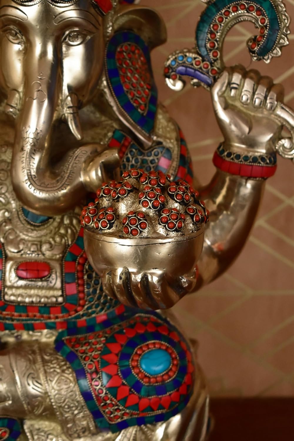 - MATERIAL : Best Quality Of Brass, FINISH : Gold Glossy With Stone Work, Code : BSIEZ