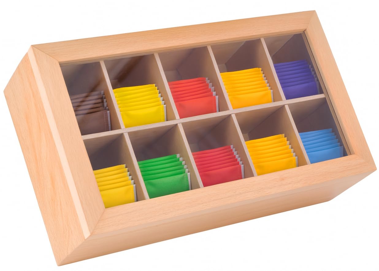 - EASY TO USE TEA STORAGE BOX: Self-standing open lid position for easy tea bag selection; see tea bags while lid is closed with transparent glass top; keep tea bags fresh and tea contain