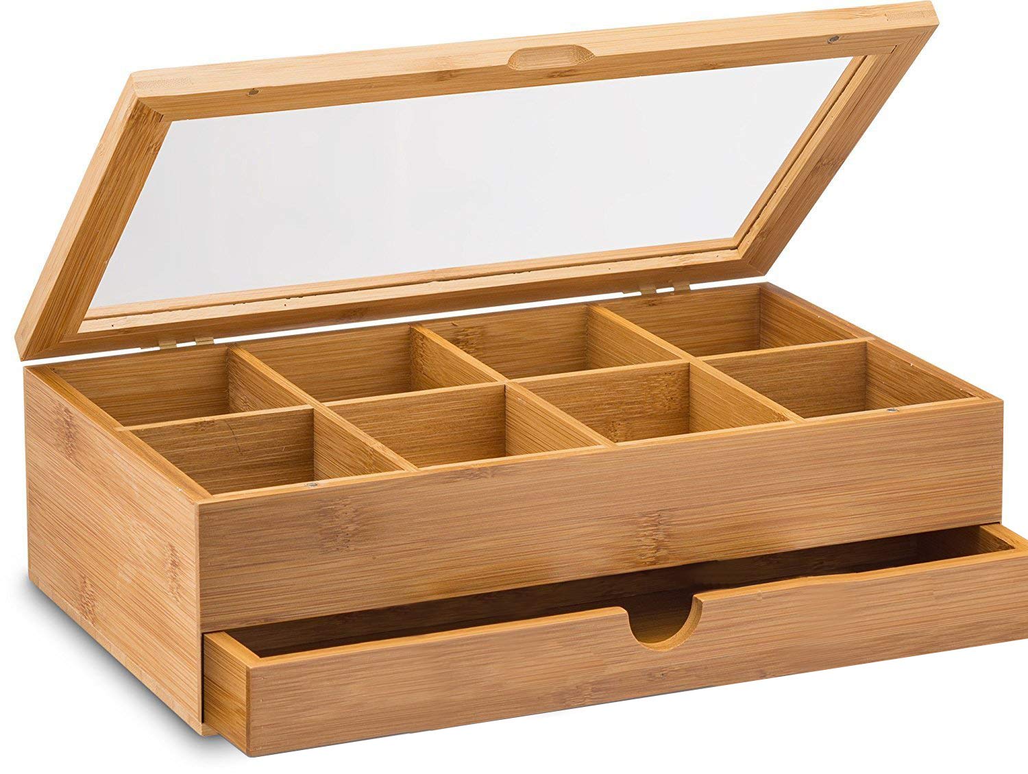 - SPACE SAVING TEA BOX ORGANIZER: Not too big, not too small, just the right size wooden tea box to store and organize all your favorite tea bags in one convenient place.