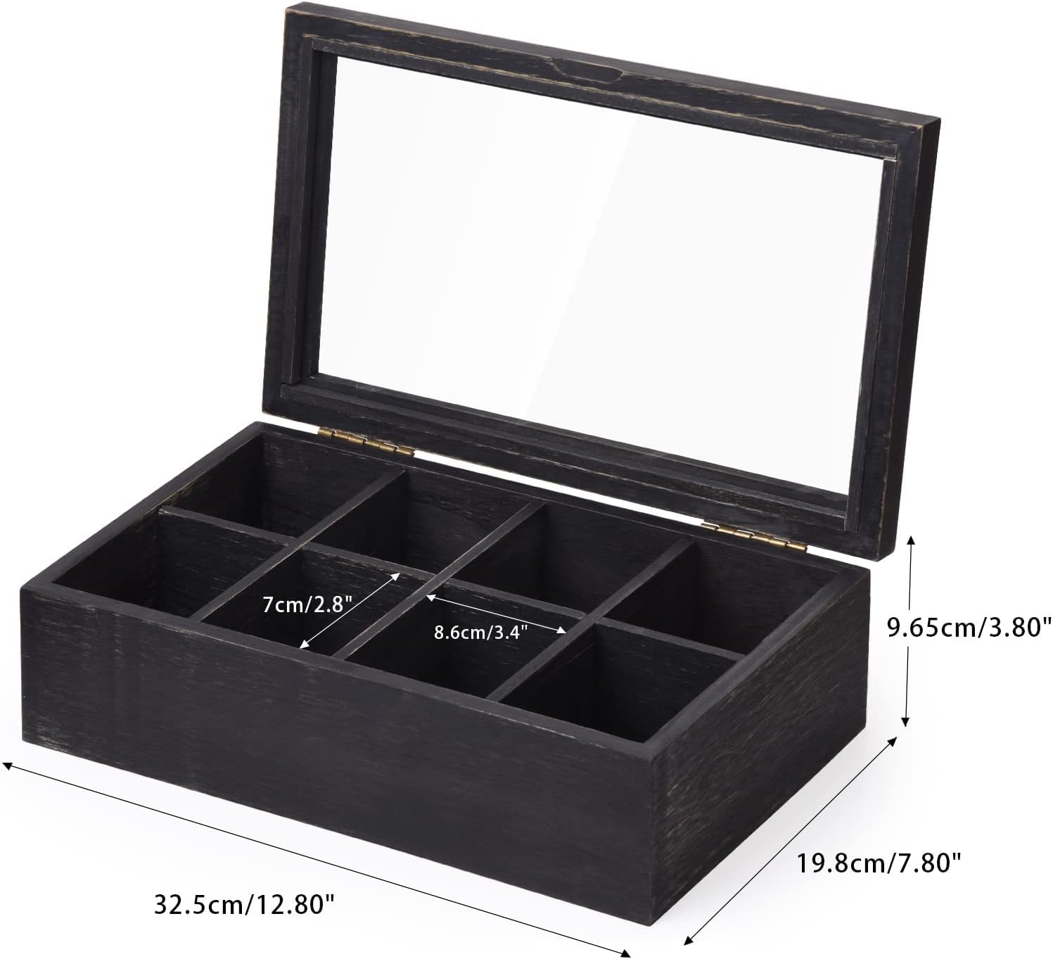 White Whale Tea Box Storage Natural Tea Chest Tea Bag Holder 8 Adjustable Tea Chest Compartments with Glass Window . PREMIUM MATERIALS: We believe that our products should not only be beautiful, but durable as well. Each box with the highest quality materials made as Buyer's satisfaction.