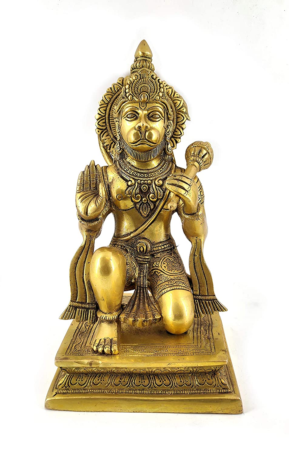 Whitewhale presents Hanuman idols are one of the most worshipped idols across India. If you are looking for the perfect hanuman idol then this is the idol that you should be investing in. Hanuman, the mighty Hindu deity that aided Lord Rama in his expedition against evil forces, is one of the most popular idols in the Hindu pantheon. Believed to be an avatar of Lord Shiva, Hanuman is worshiped as a symbol of physical strength, perseverance and devotion. The monkey god's tale in the Indian epic Ramayana is known for its astounding ability to inspire and equip the reader with the ingredients needed to face ordeals and conquer obstructions in the way of the world. In times of trouble, it is a common faith among Hindus to chant the name of Hanuman or sing his hymn ("Hanuman Chalisa") and proclaim "Bajrangbali Ki Jai" - "victory to thy thunderbolt strength". A vanara (monkey-like humanoid), Hanuman participated in Rama's war against the demon king Ravana. This is a beautifully crafted statue of Hanuman in brass metal.