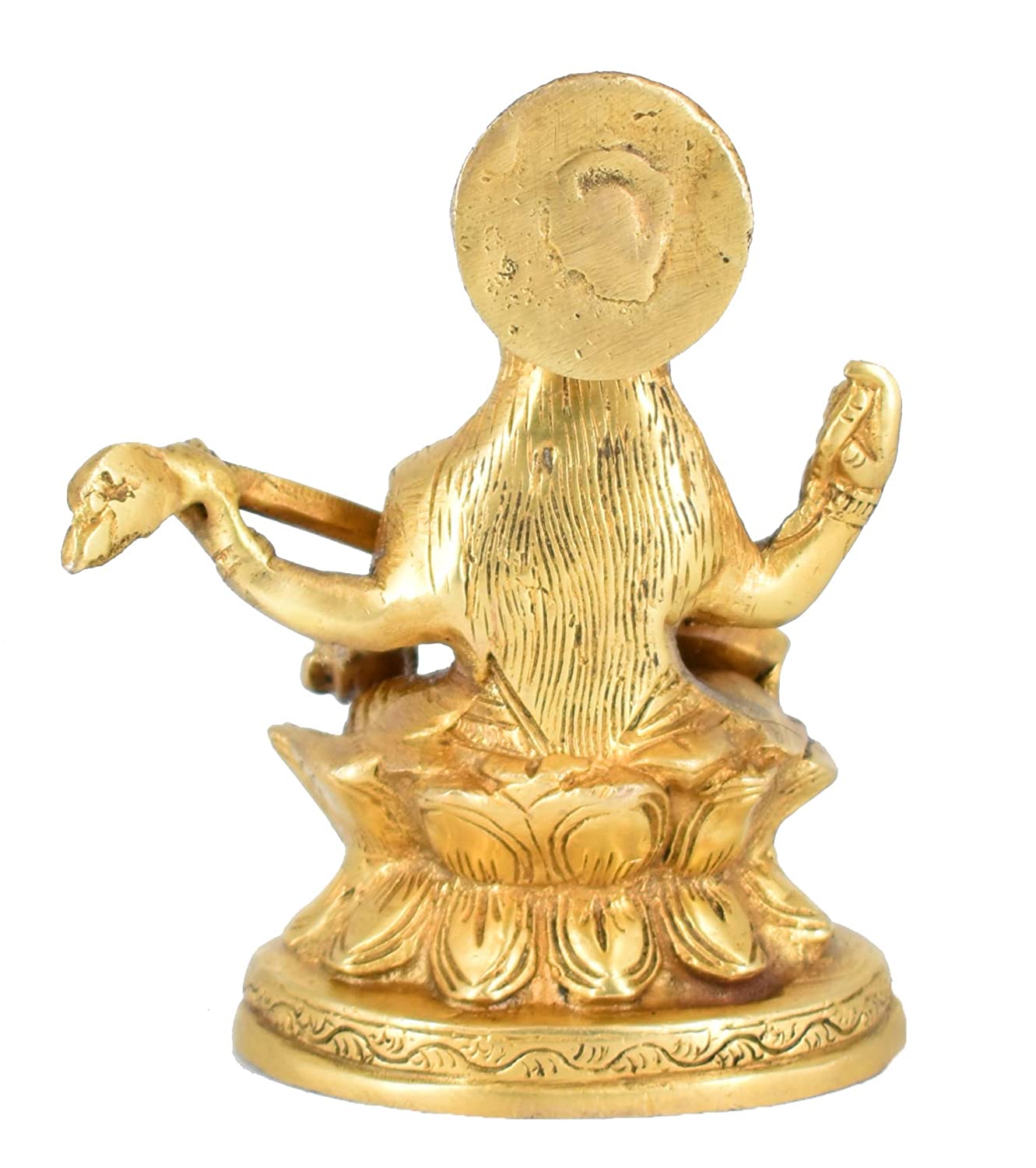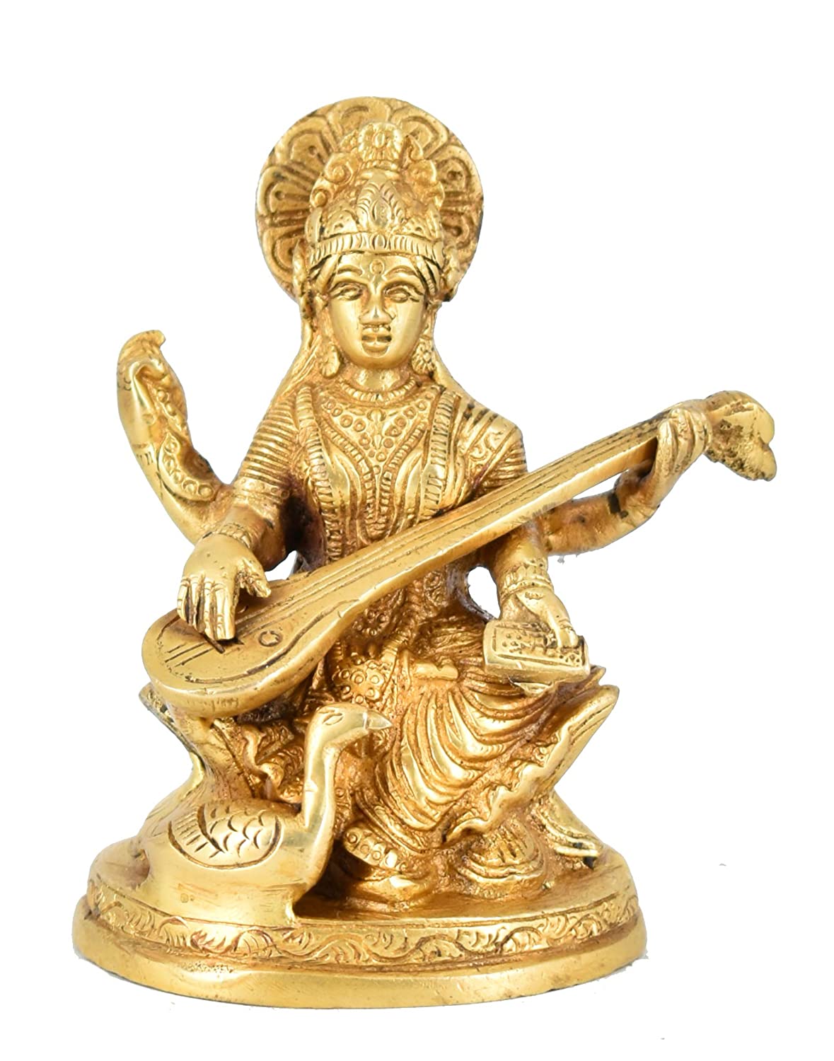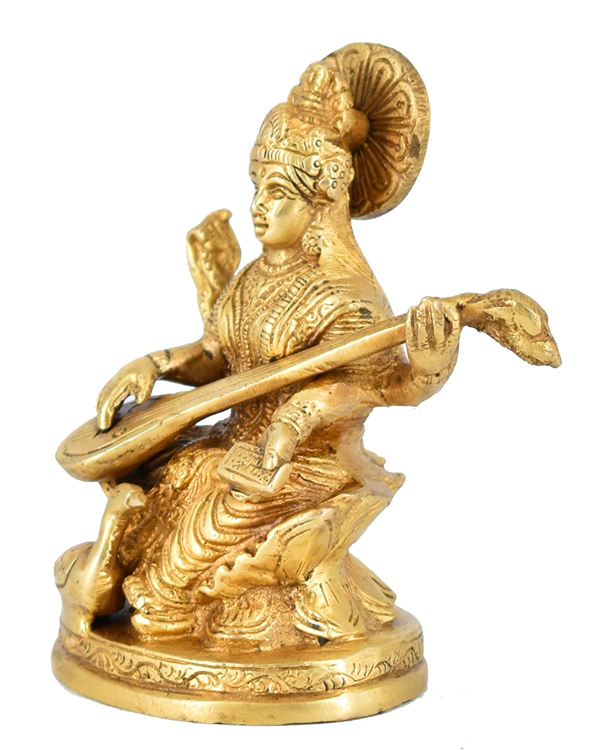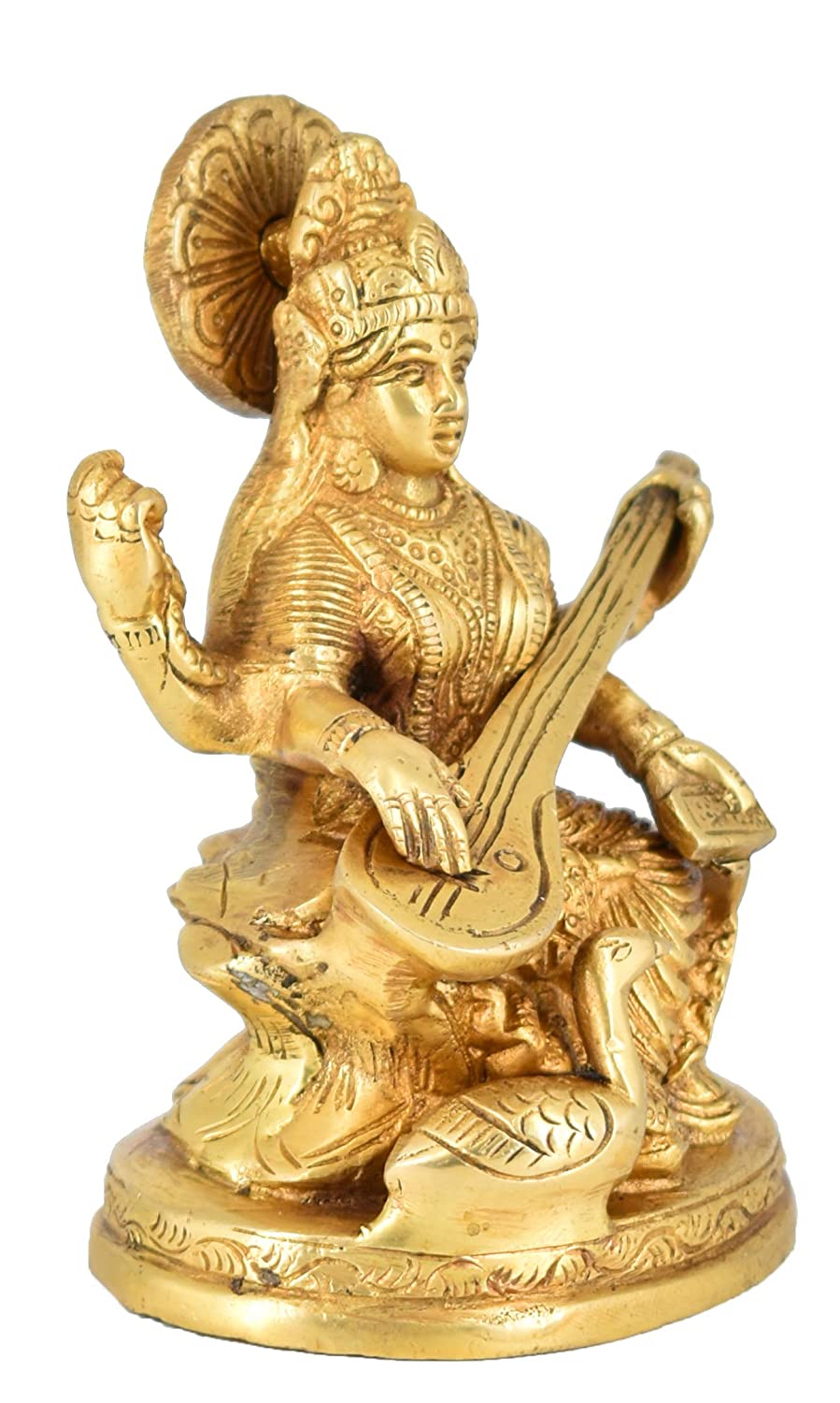 White Whale Maa Saraswati Brass Statue Religious Goddess Sculpture Idol Home Décor