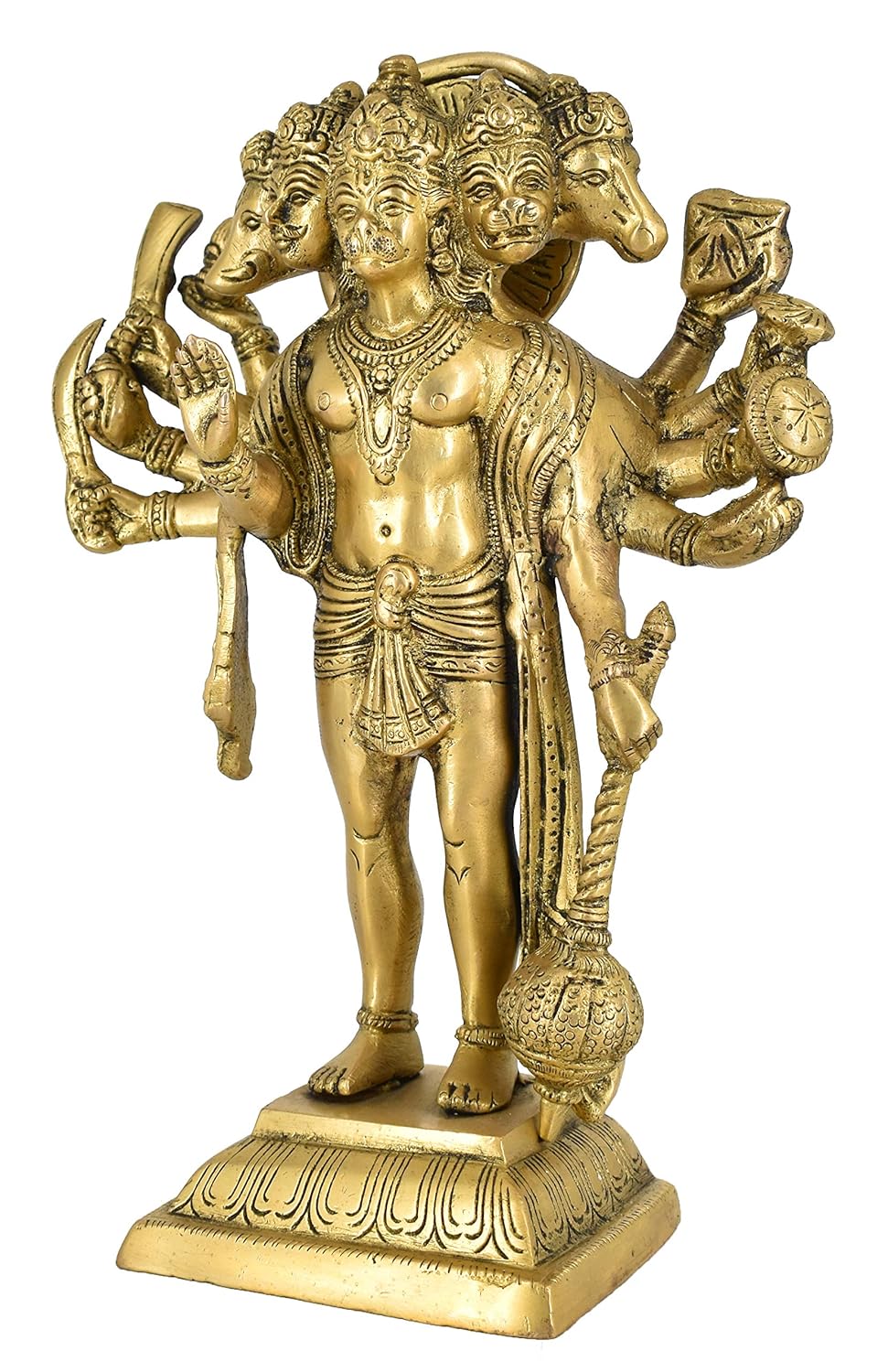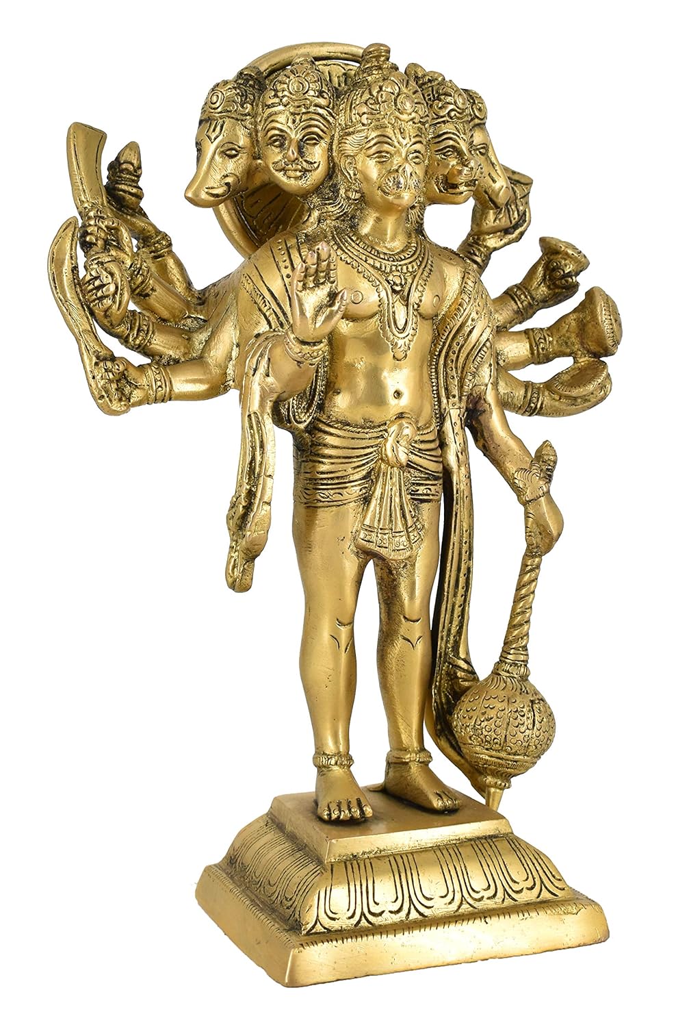White Whale Large Unique Five Face Panchmukhi Hanuman Brass Statue Religious Strength God Sculpture Idol