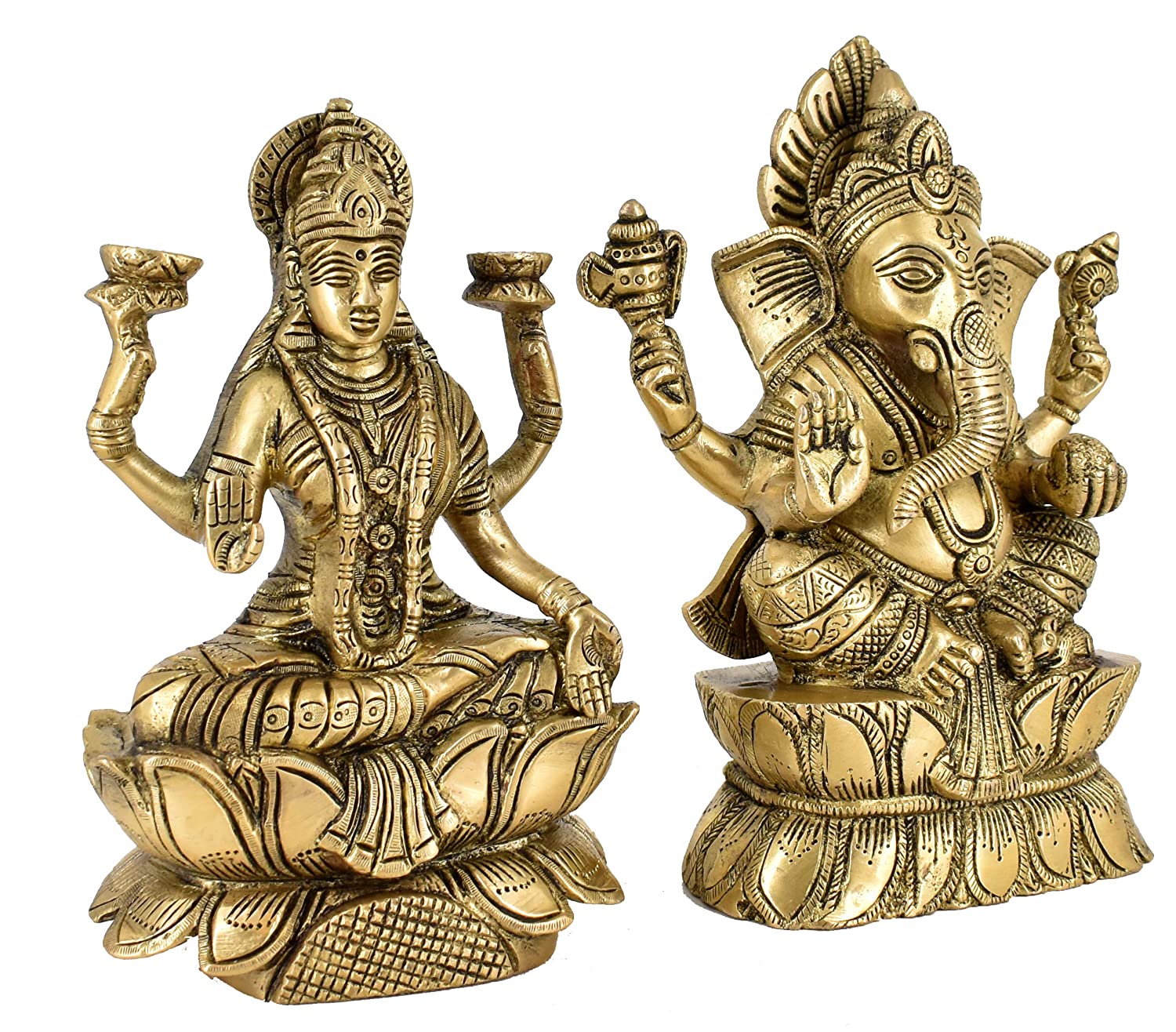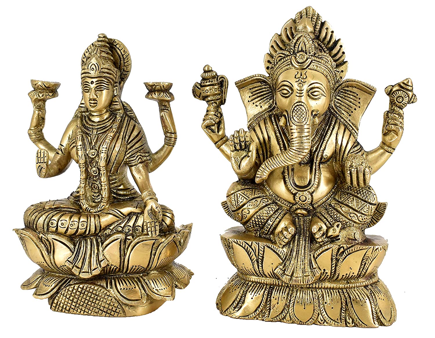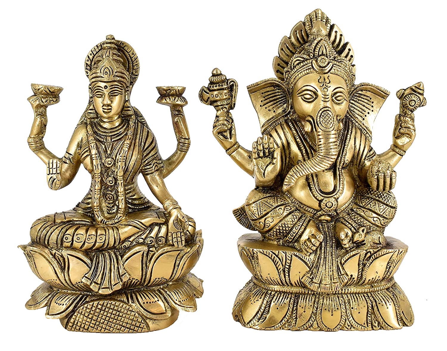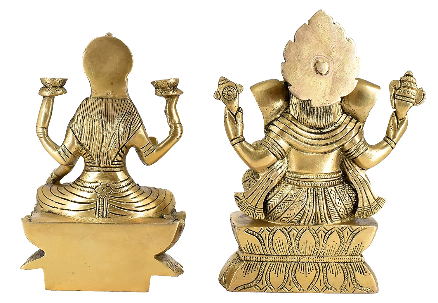 White Whale Brass Laxmi Ganesh Set Idol Showpiece - Brass Gold Finish Lakshmi Ganesha Idols Statue for Diwali Gifts Puja Home Decor Figurine
