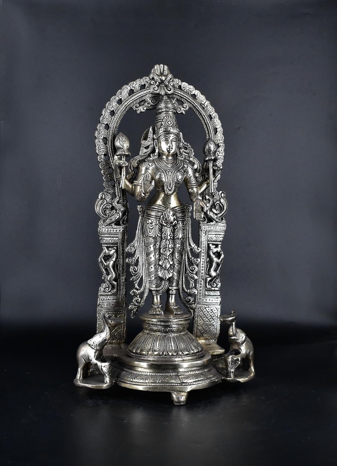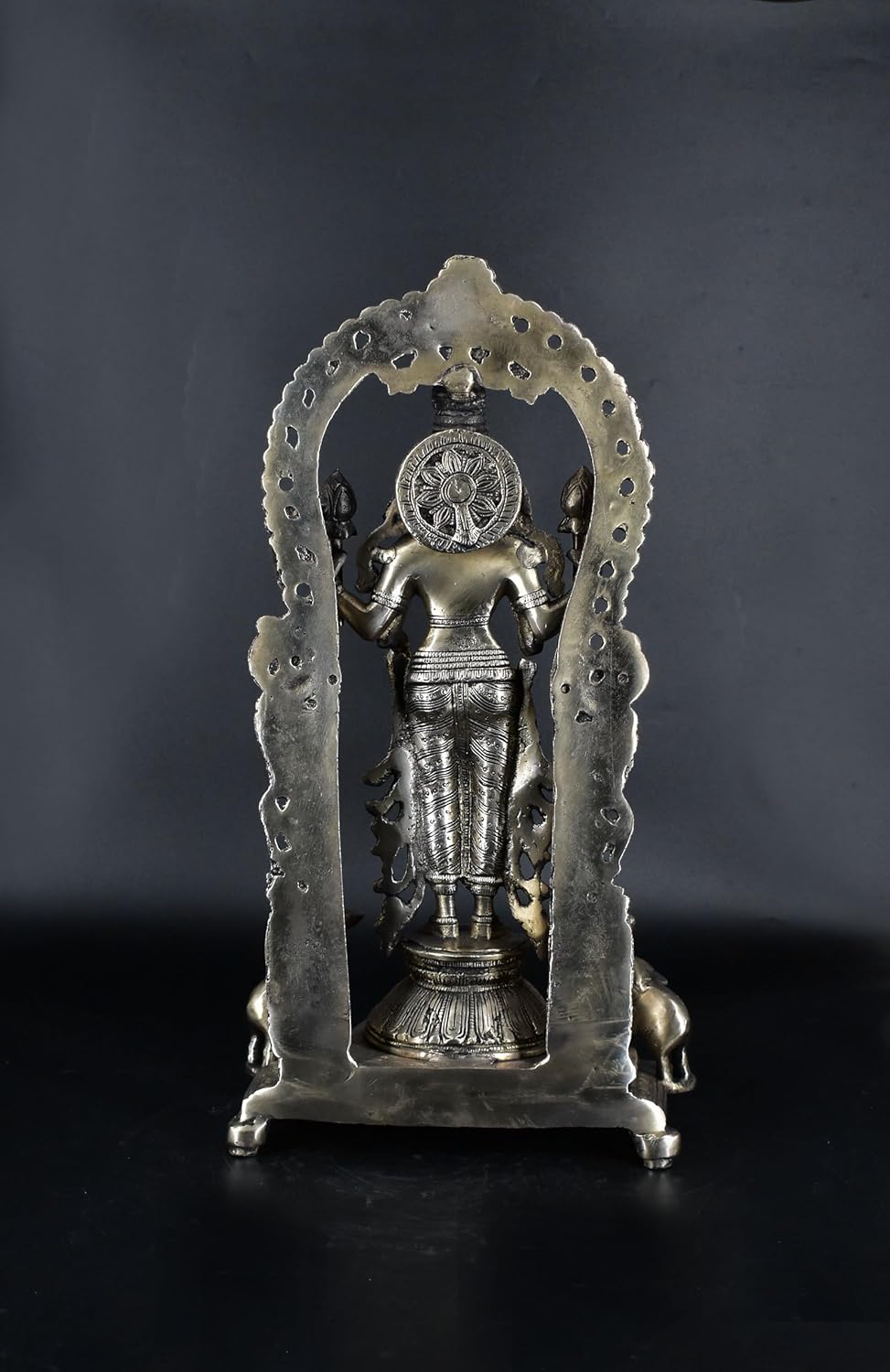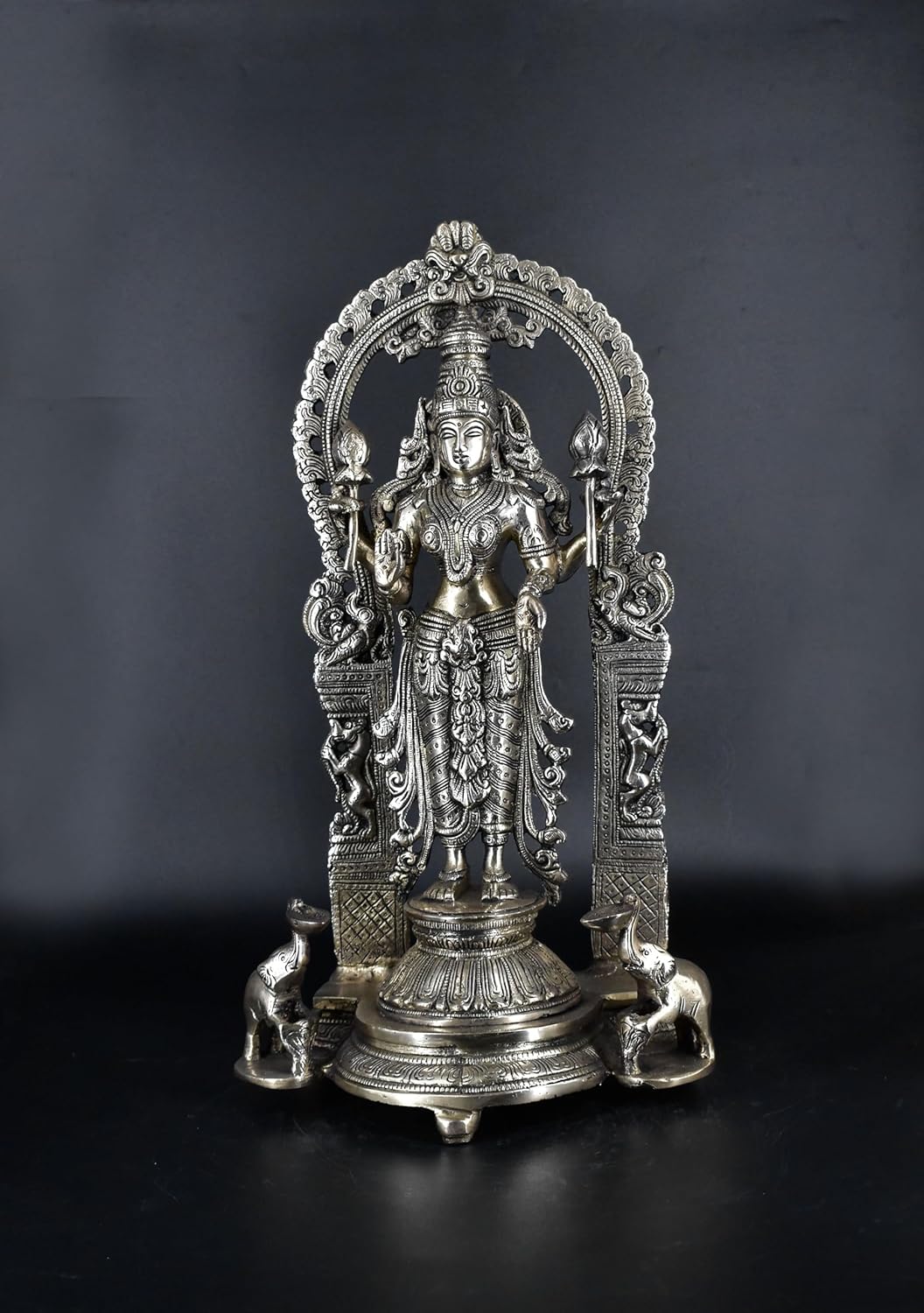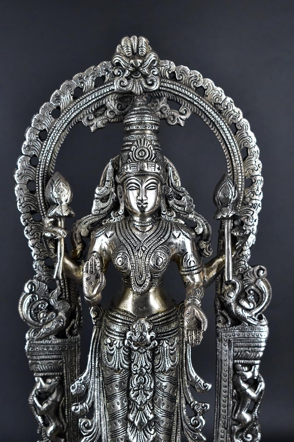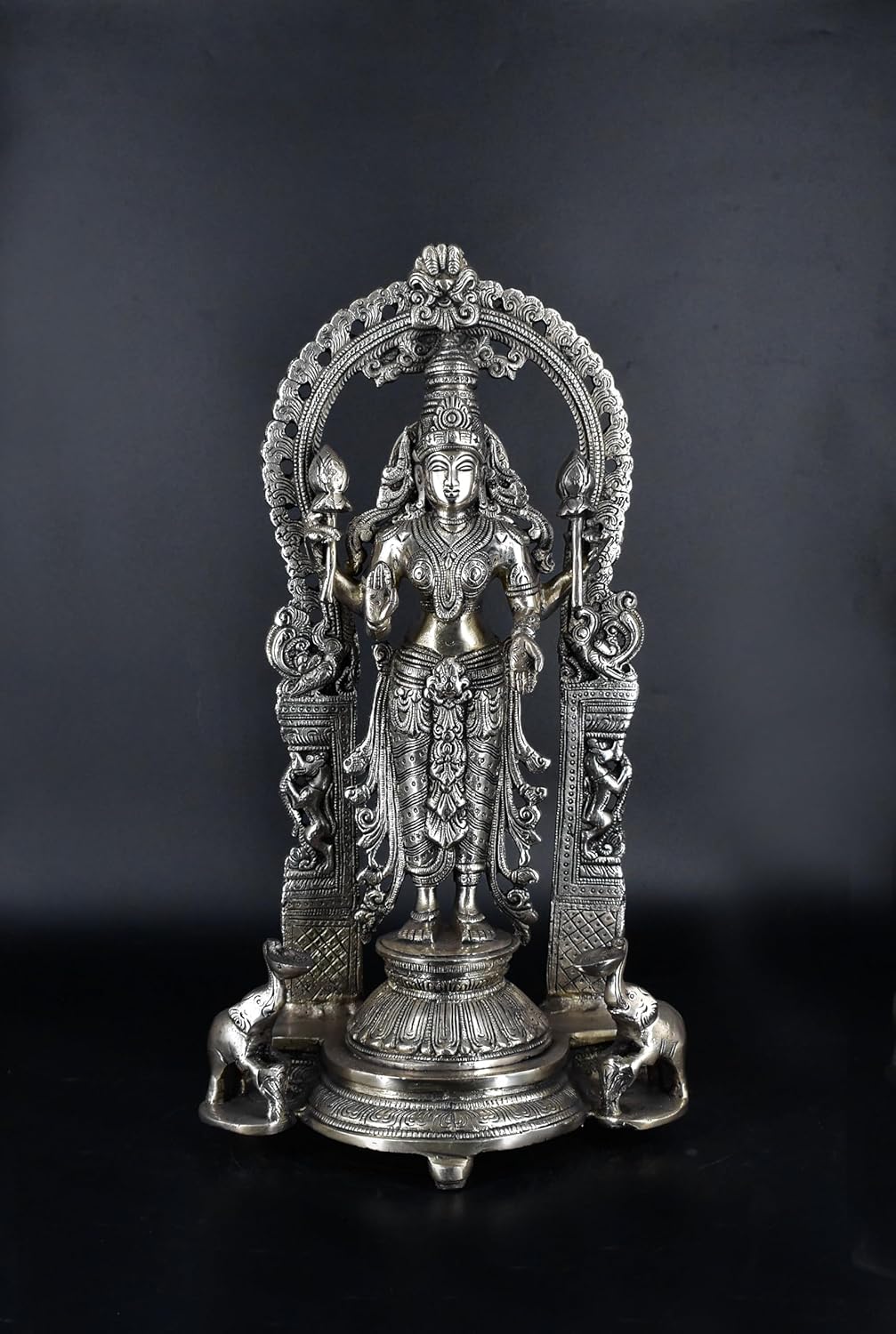 White Whale Standing Goddess Lakshmi with Prabhavali - Brass Statue for Home Decor Mandir Pooja