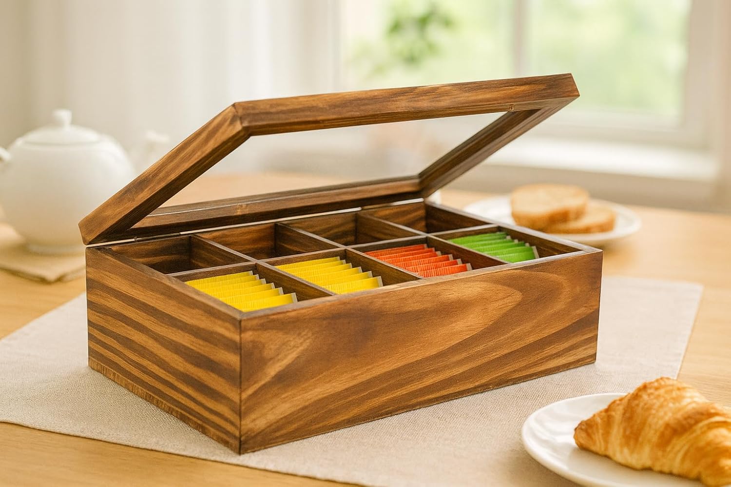 - Wooden Tea Box can help to get rid of the cluttering of kitchen counter, not only keep them organized, but preserve their freshness, a nice storage tool for kitchen and restaurant