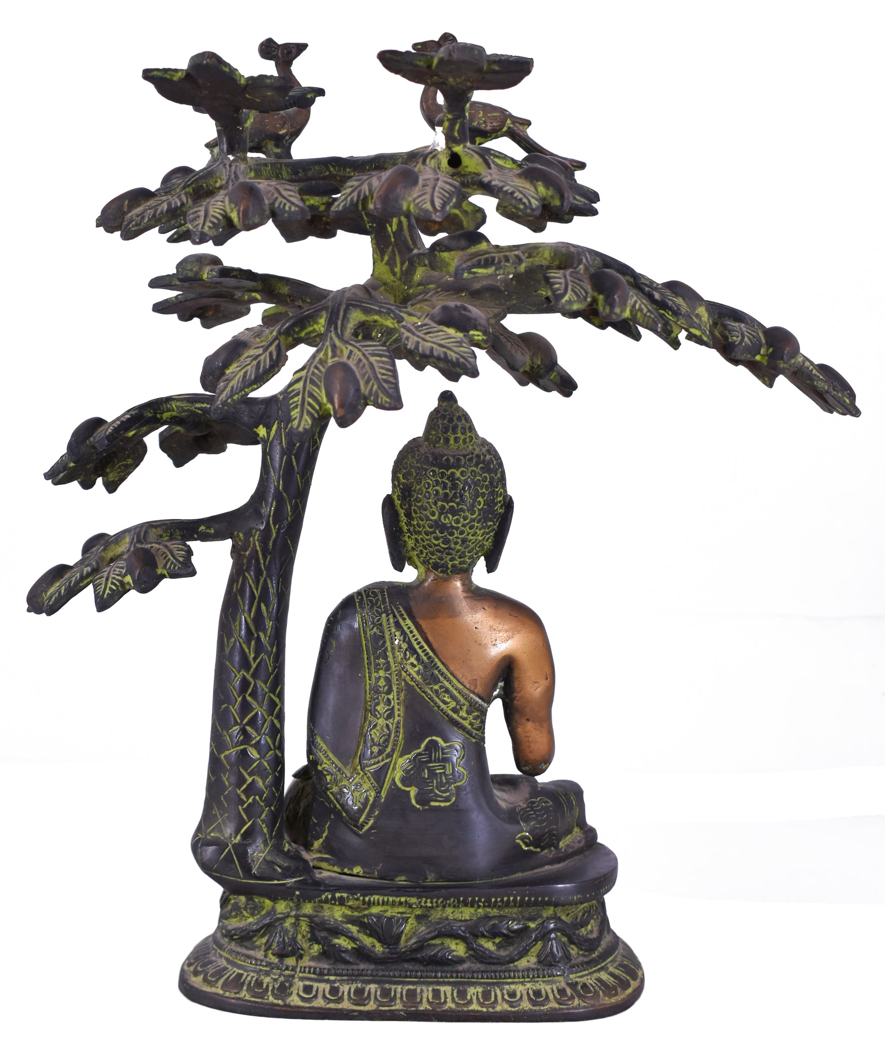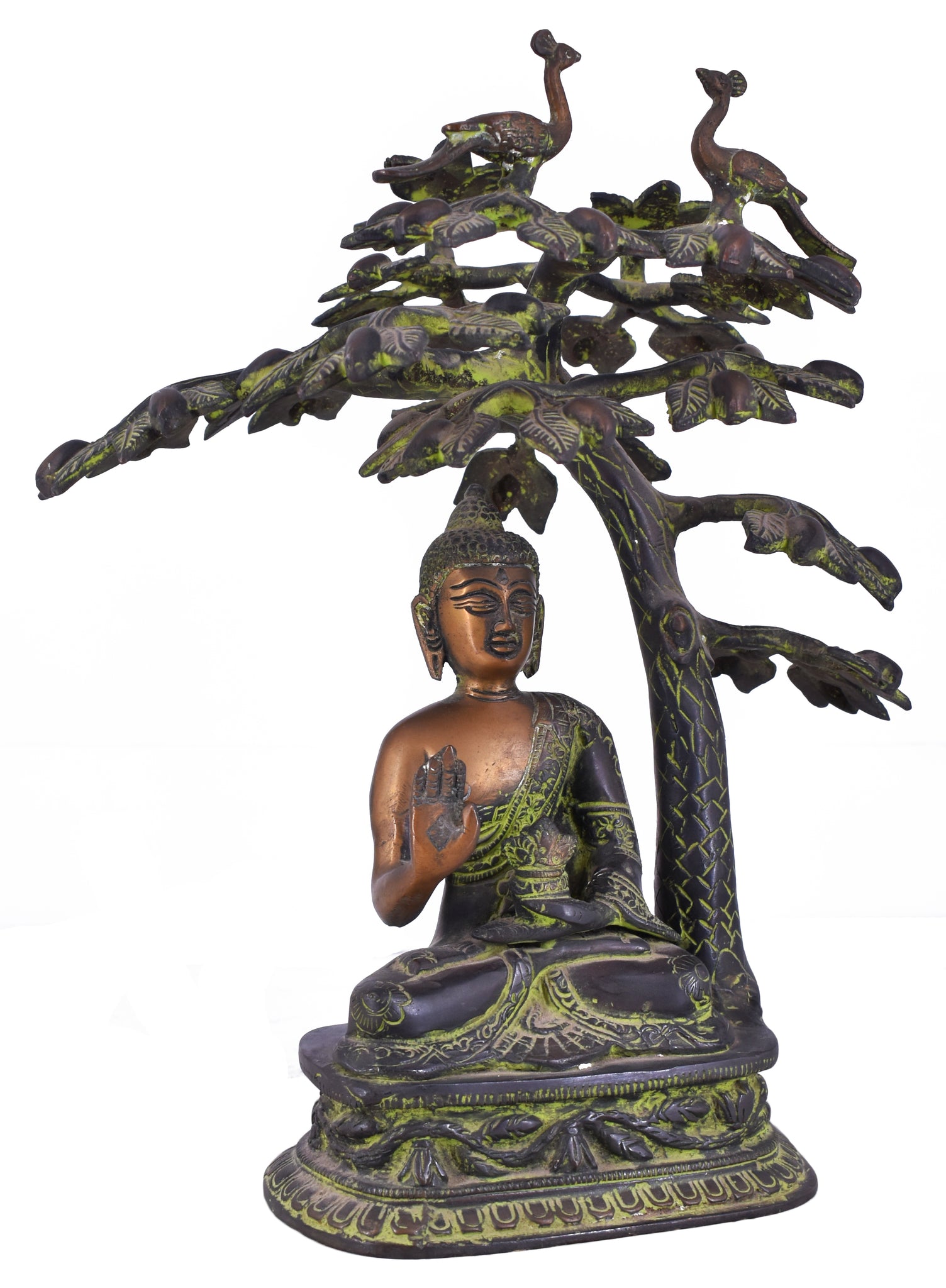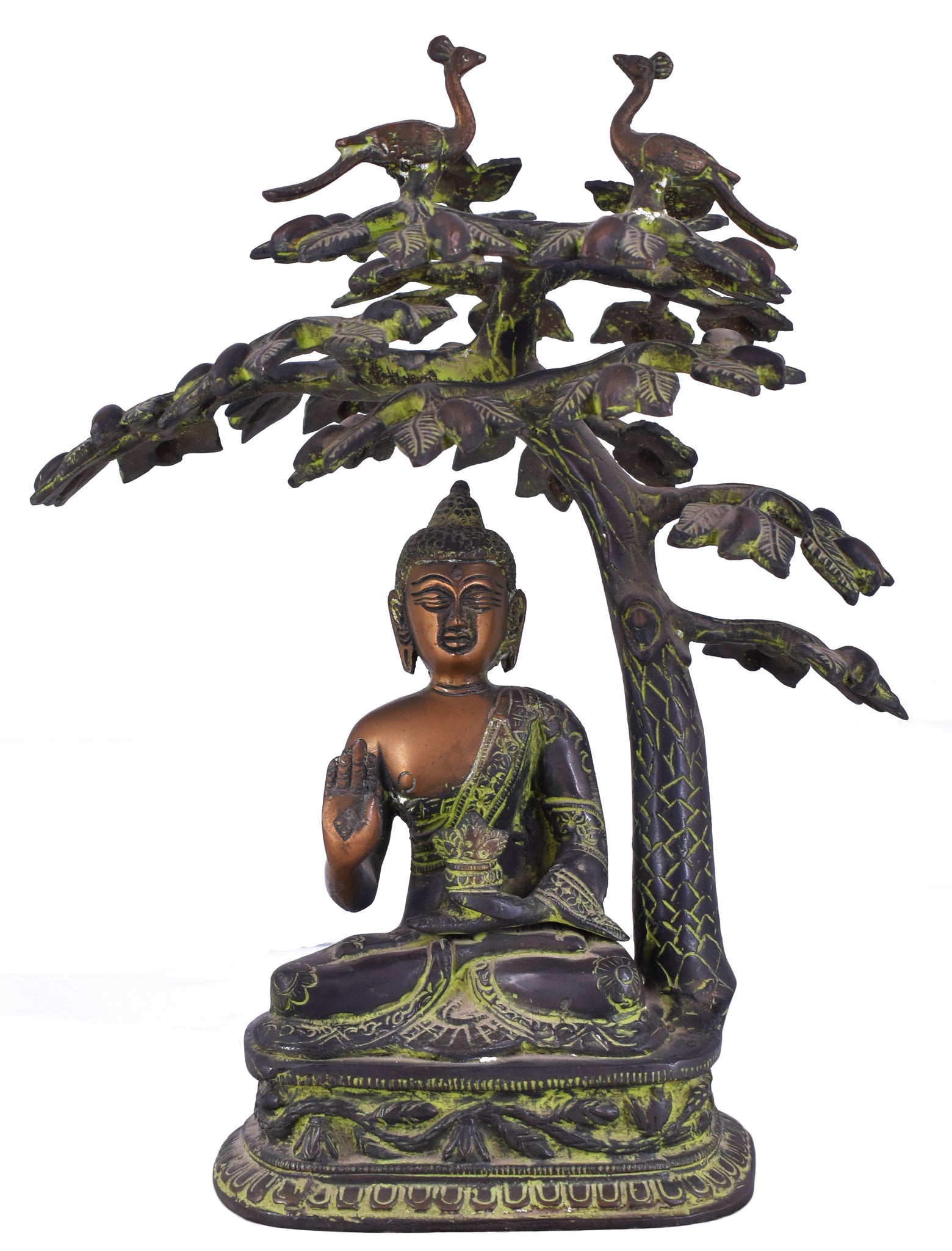 White Whale Brass Lord Buddha Statue Blessing Under The Tree Murti for Home Decor Entrance Office Table Living Room Meditation Luck Gift Feng Shui