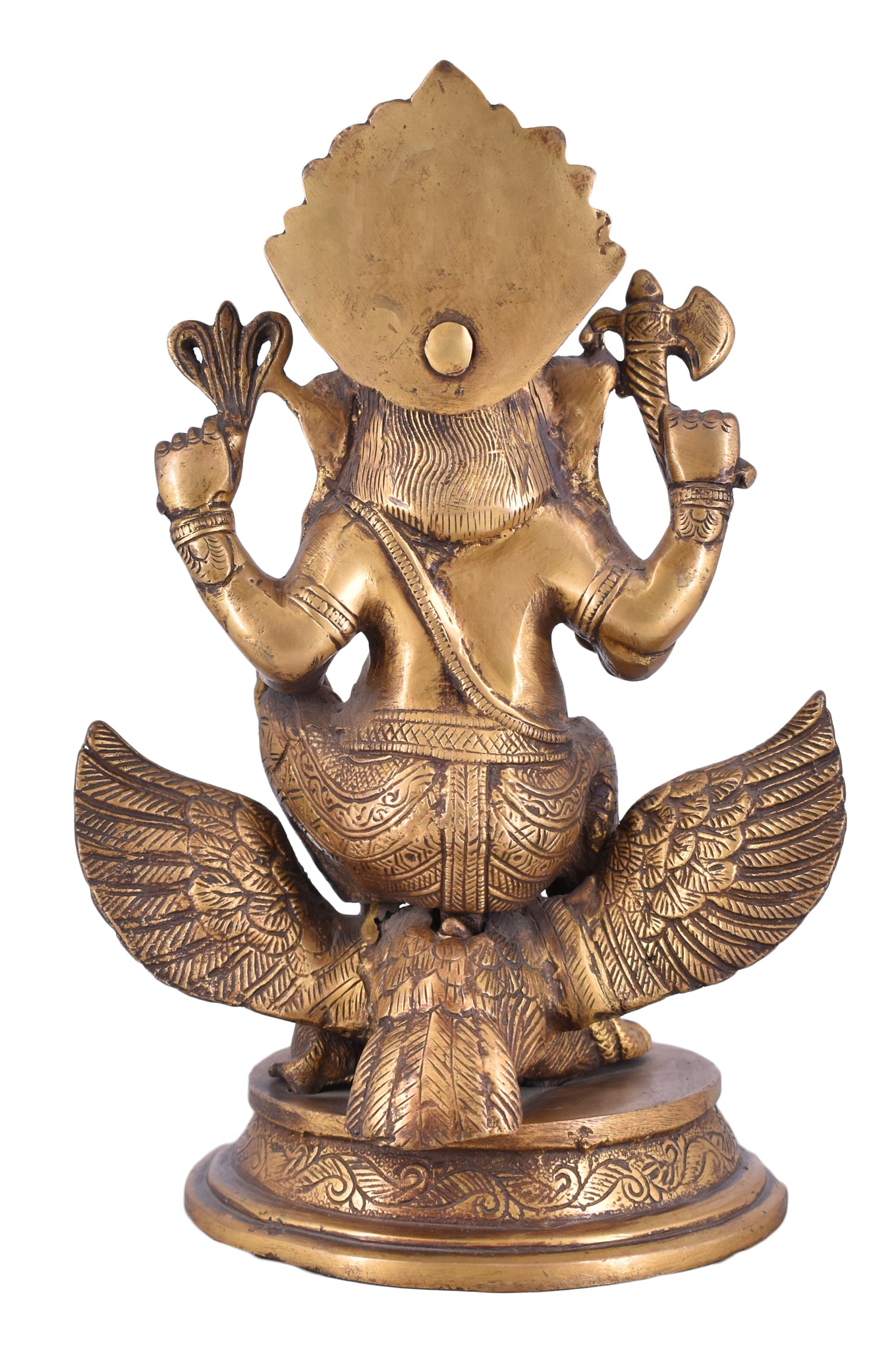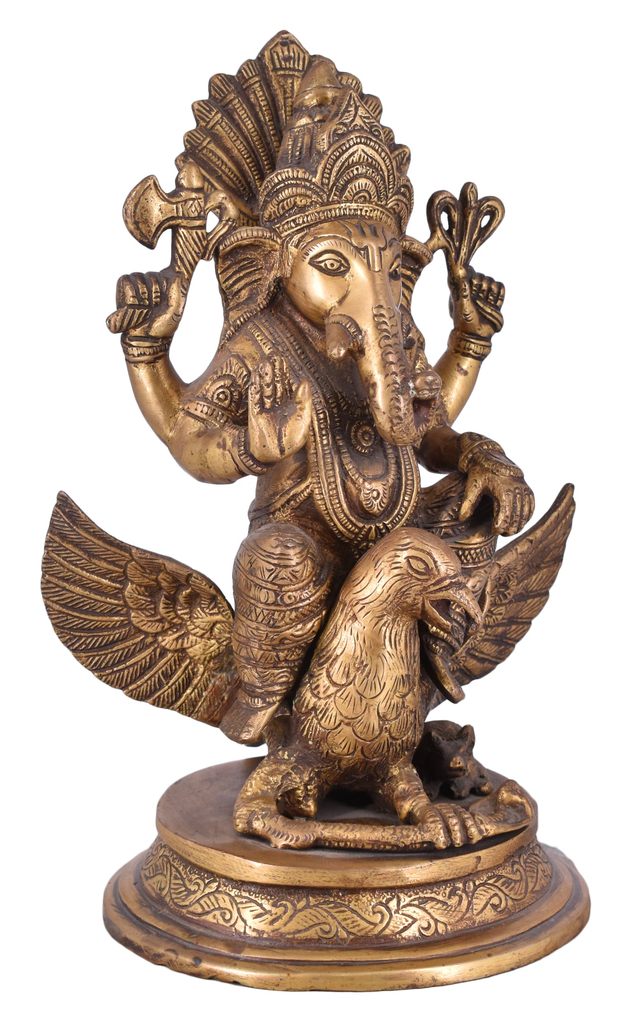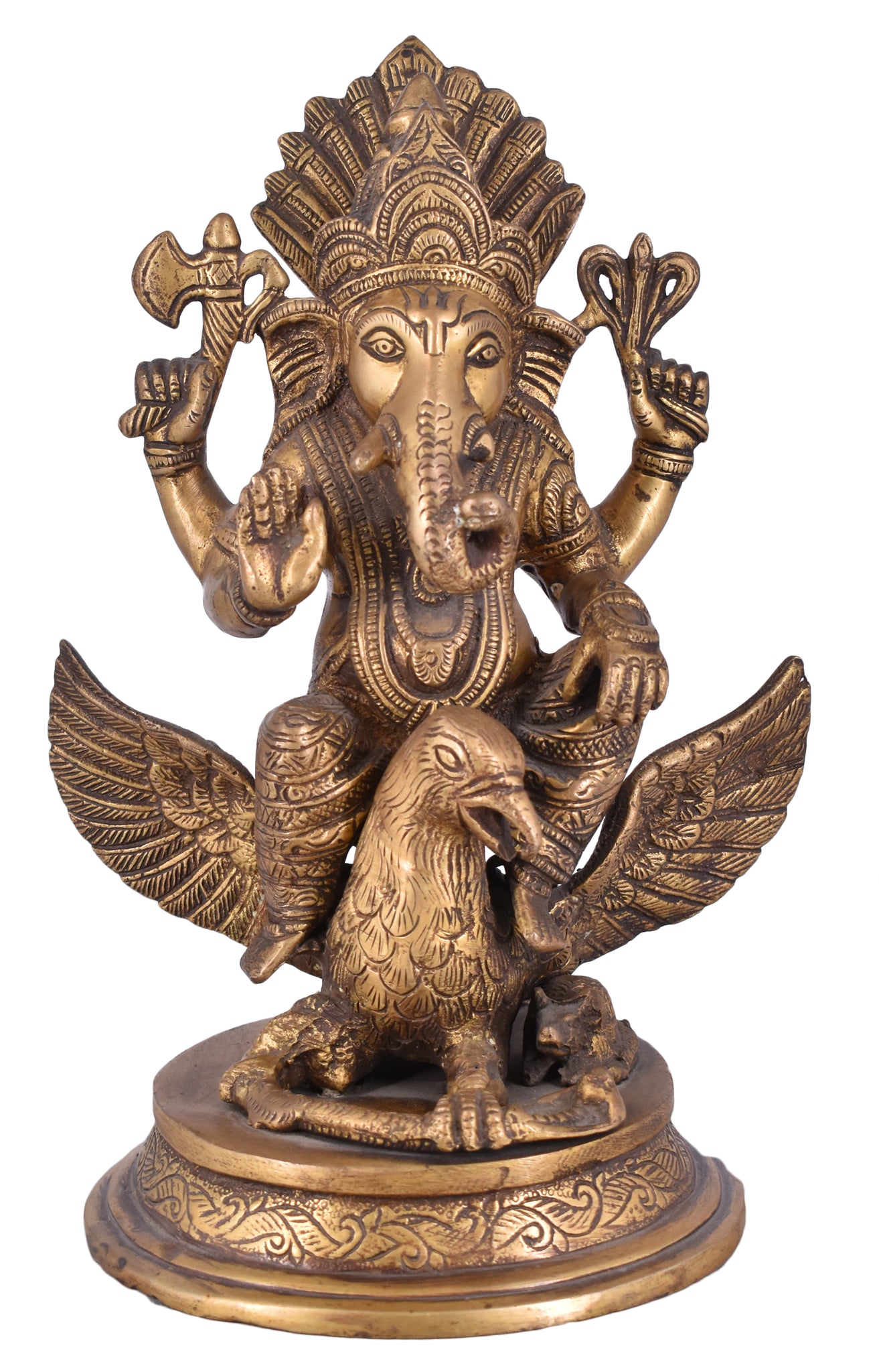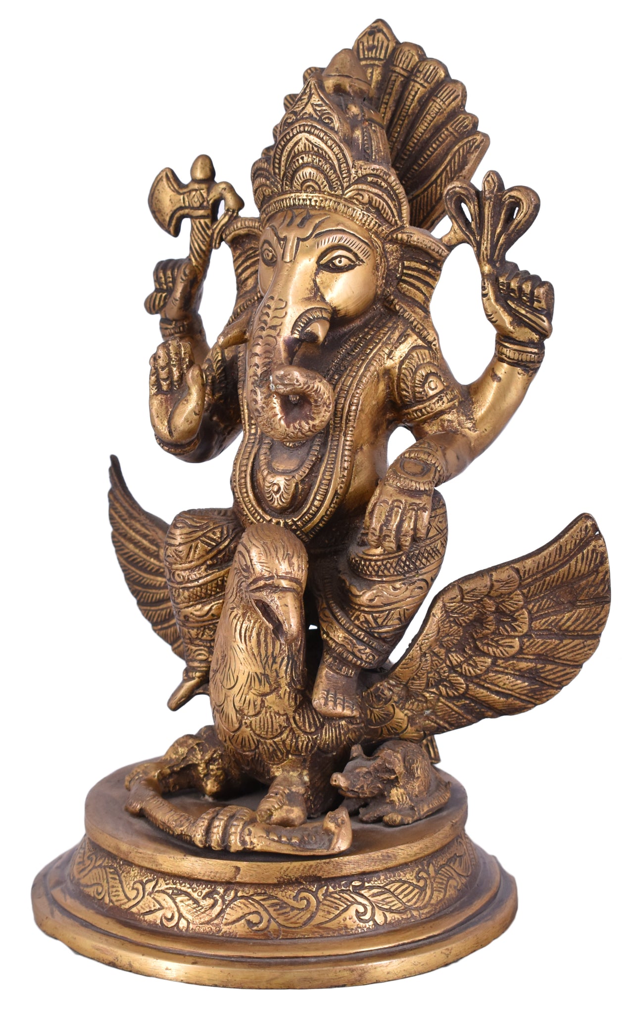 White Whale presents Lord Ganesha is the remover of obstacles, the deity whom worshipers first acknowledge when they visit a temple. He is worshipped for success (siddhi) in undertakings and intelligence (buddhi). He is worshipped before any venture is started. He is also the God of education, knowledge and wisdom, literature, and fine arts. Ganesha is the legendary scribe who, using his broken tusk, which he often holds, wrote down parts of the Mahabharata epic.This Handmade Gods Sculpture is fully artisan crafted in India, making it a truly authentic figurine. This Handmade God Ganesha Sculpture is designed in Brass using sand casting technique and has a golden color to it.Place this calm art piece in your living room for an effervescence beauty or gift it to your loved ones before he/she enters a new phase in life