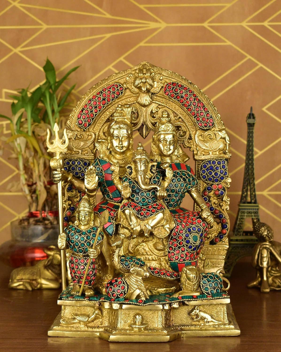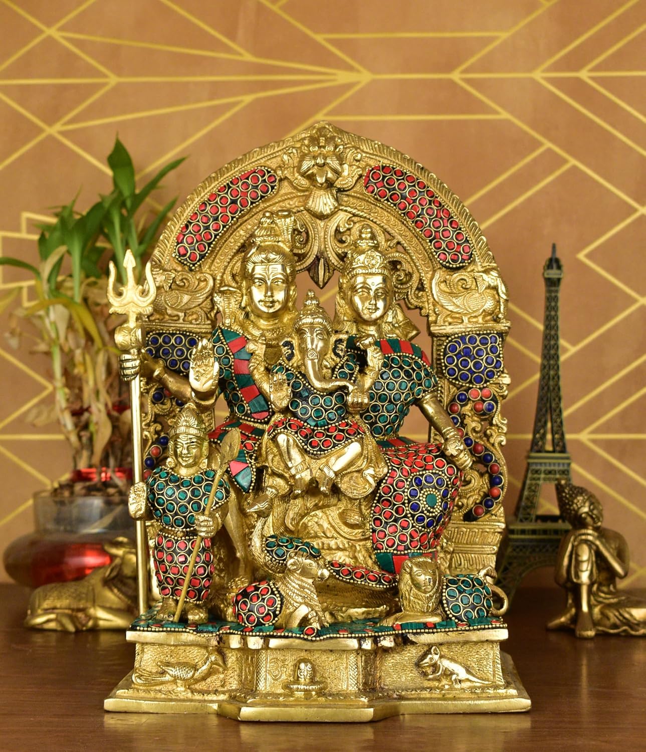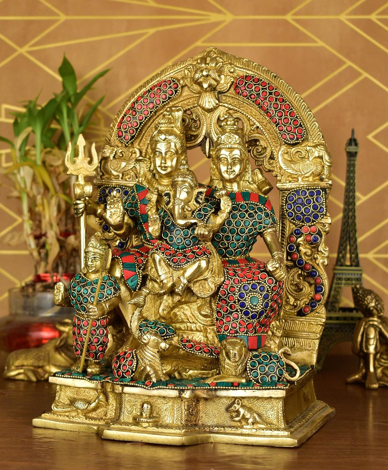 White Whale Shiva Parvati Ganesh Idol Shiv Parivar Brass Murti Statue
