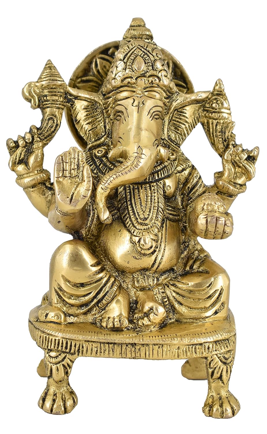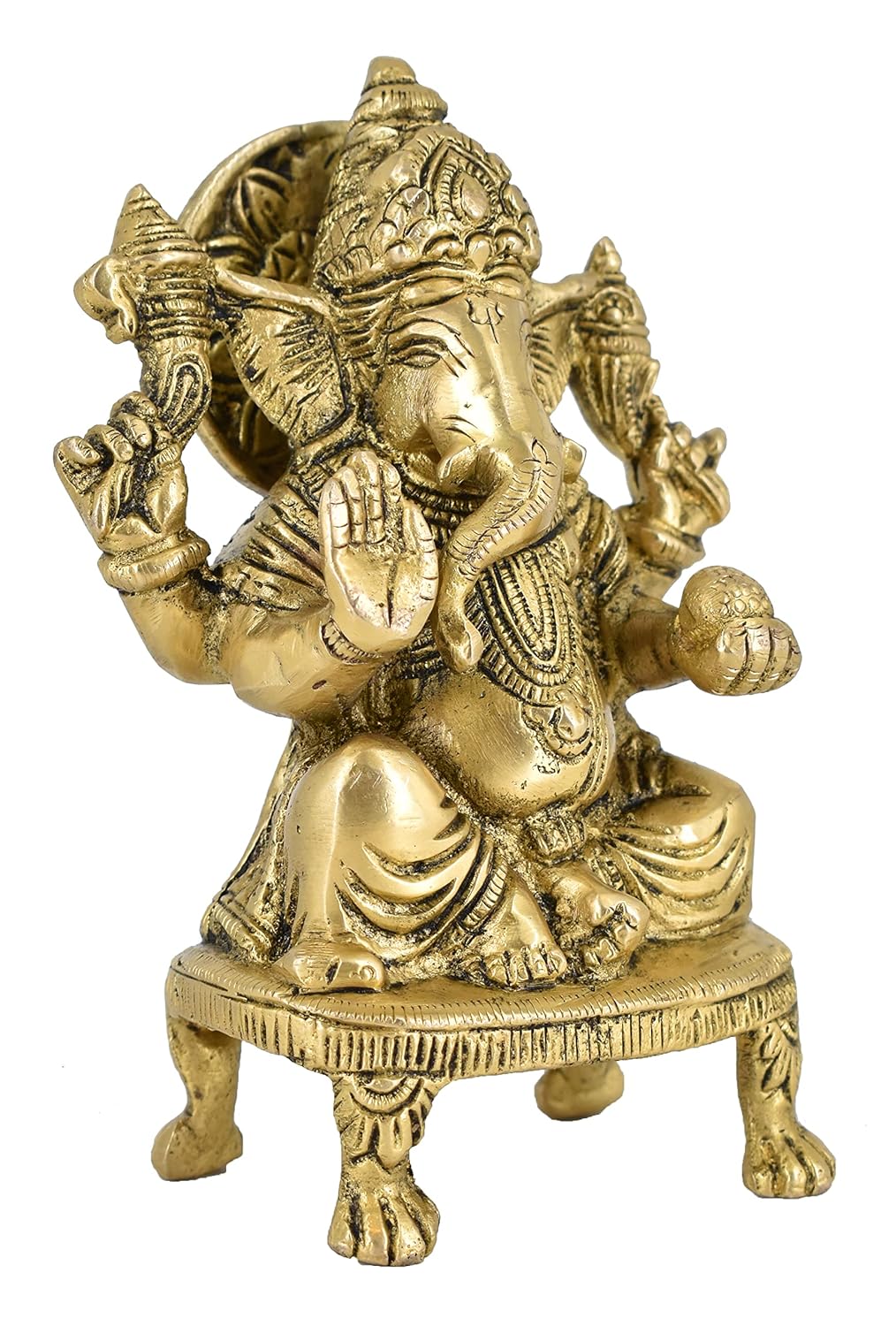 Whitewhale presents Lord Ganesha is the remover of obstacles, the deity whom worshipers first acknowledge when they visit a temple. He is worshipped for success (siddhi) in undertakings and intelligence (buddhi). He is worshipped before any venture is started. He is also the God of education, knowledge and wisdom, literature, and fine arts. Ganesha is the legendary scribe who, using his broken tusk, which he often holds, wrote down parts of the Mahabharata epic.This Handmade Gods Sculpture is fully artisan crafted in India, making it a truly authentic figurine. This Handmade God Ganesha Sculpture is designed in Brass using sand casting technique and has a golden color to it.Place this calm art piece in your living room for an effervescence beauty or gift it to your loved ones before he/she enters a new phase in life.