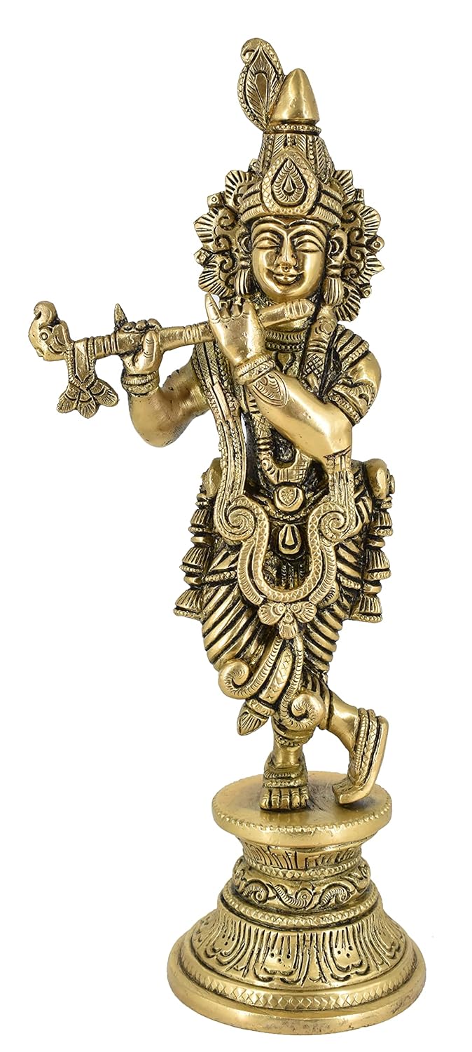 This beautiful Krishna statue created by craftsmen in India, the lovely statue brings goodness and benevolence to your home and your world Gorgeous Hand work and perfect showpiece of Indian Handicrafts. Ideal For Gift & Home Decor Lord Krishna is a major Hindu deity worshiped in a variety of different perspectives. Lord Krishna is recognised as the Svayam Bhagavan in his own right or as the complete/absolute incarnation of Lord Vishnu. Lord Krishna is one of the most widely revered and popular of all Hindu deities. Lord Krishna is also known as Govinda, Mukunda, Madhusudhana, and Vasudeva. This Showpiece is Best Gift for Marriage Anniversary , Parents , Mothers day , Wedding Return Gift , Birthday , House warming , Office