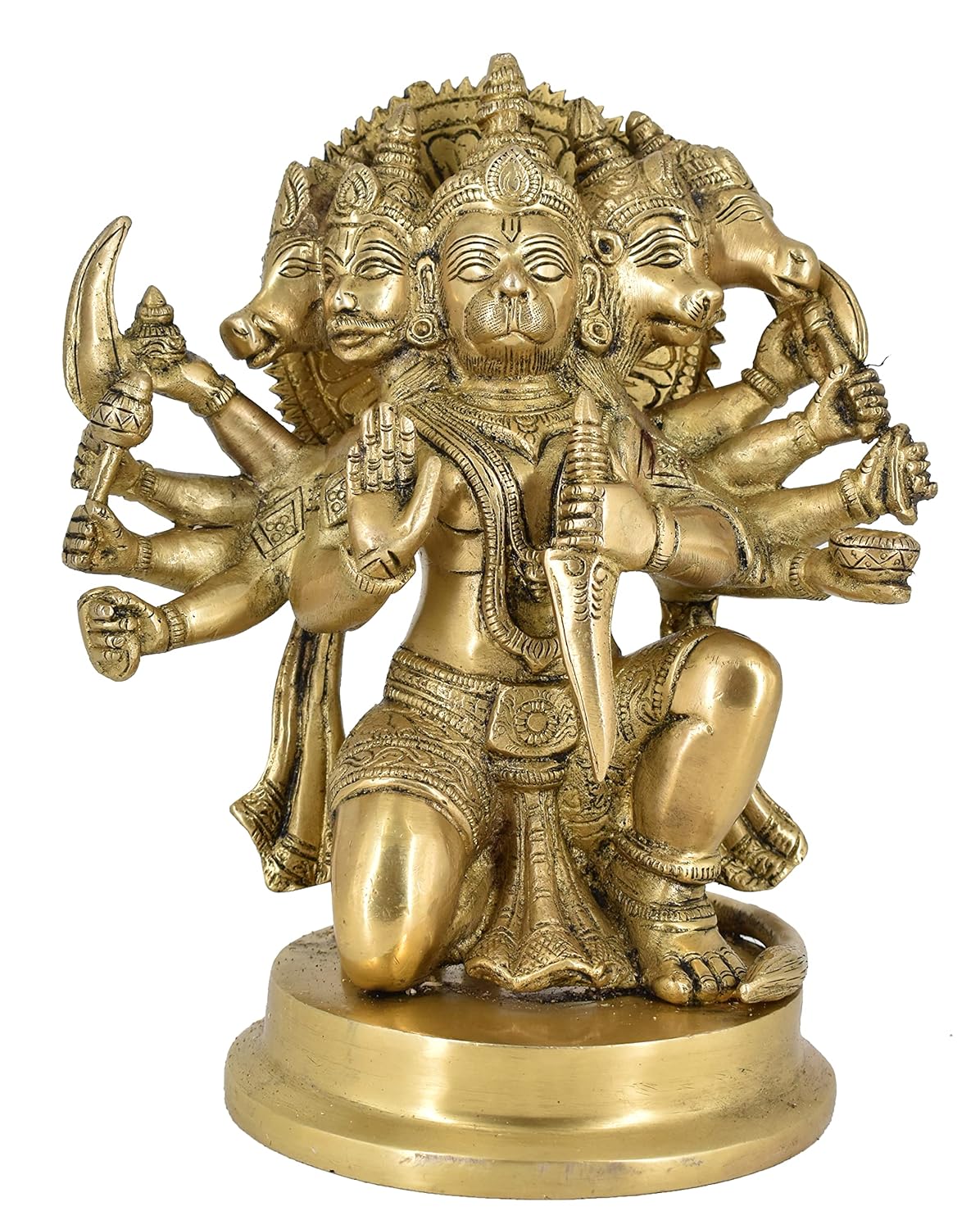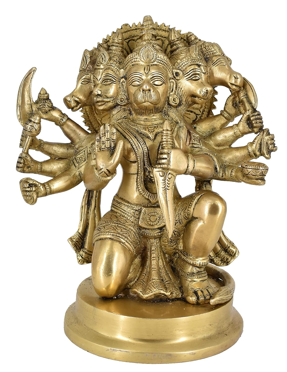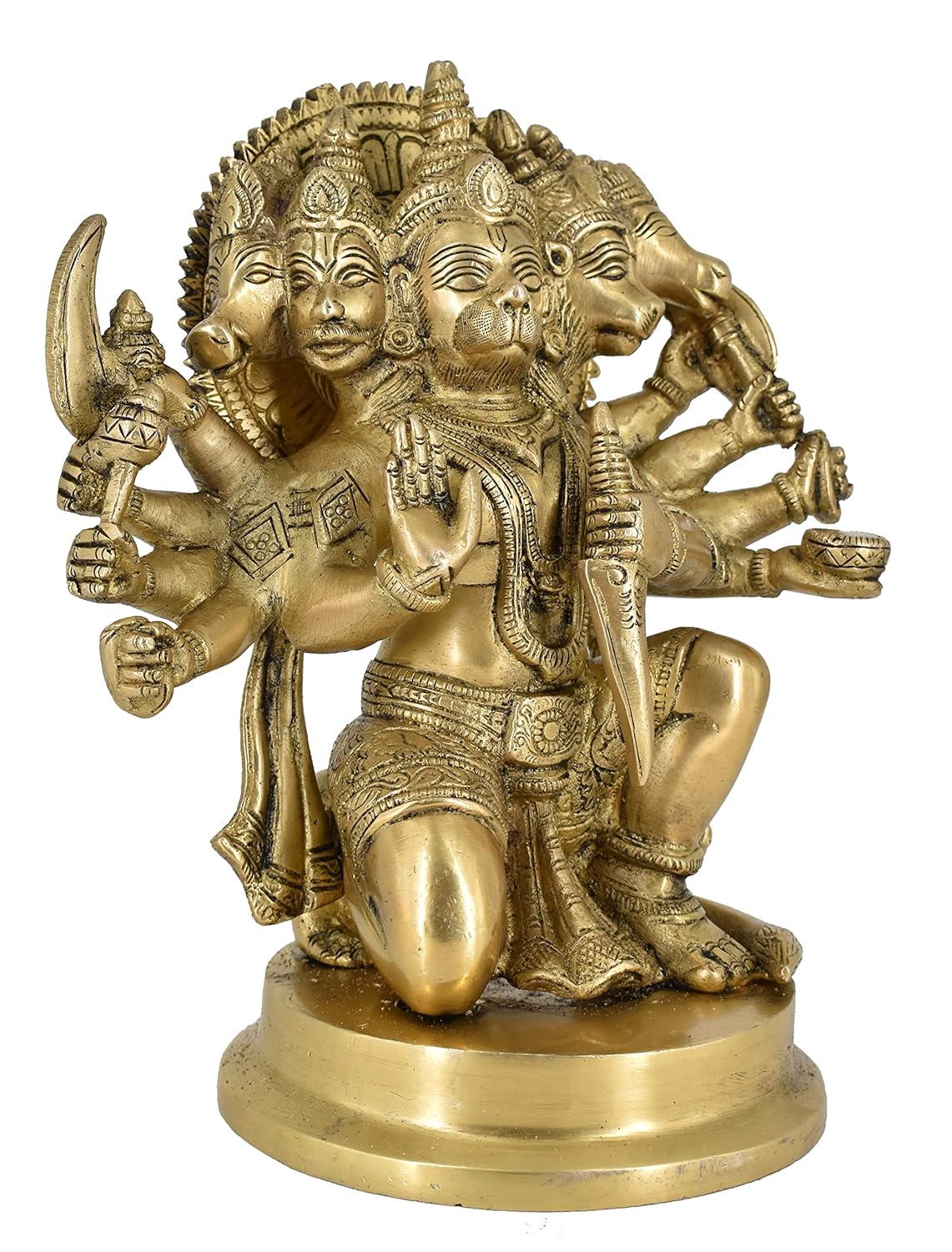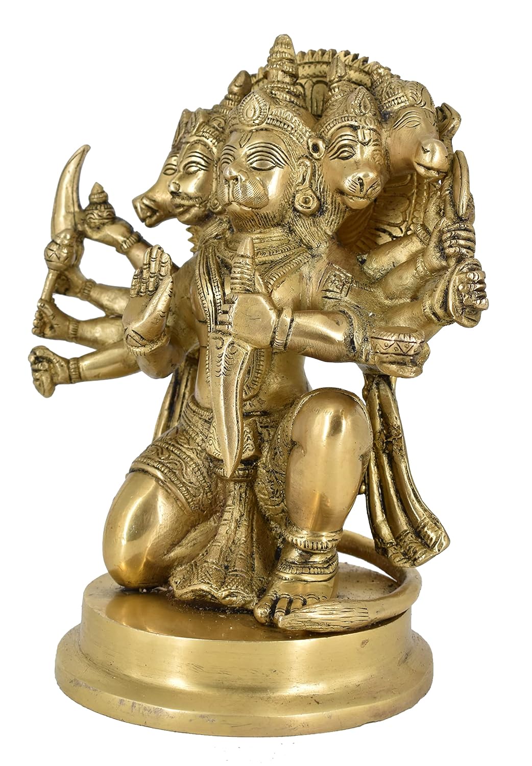 White Whale Large Unique Five Face Panchmukhi Hanuman Brass Statue Religious Strength God Sculpture Idol