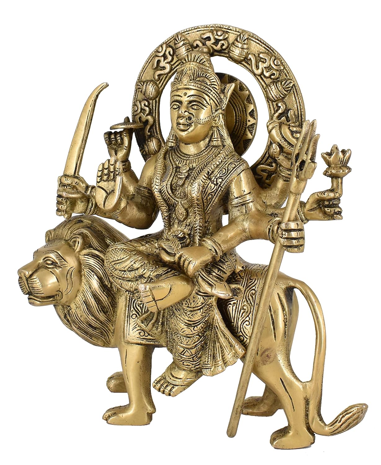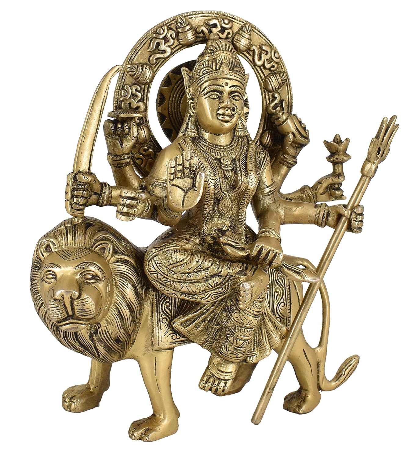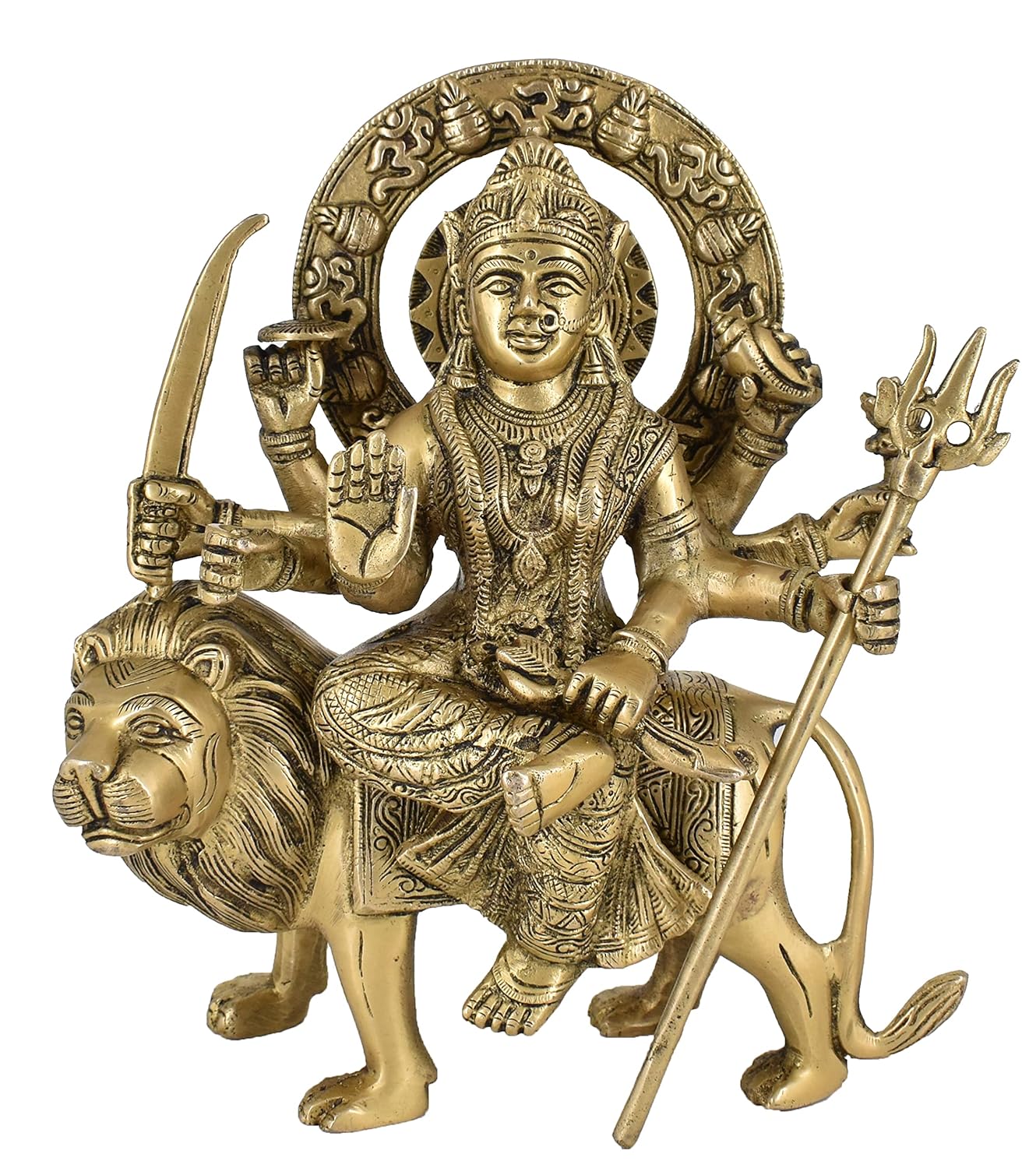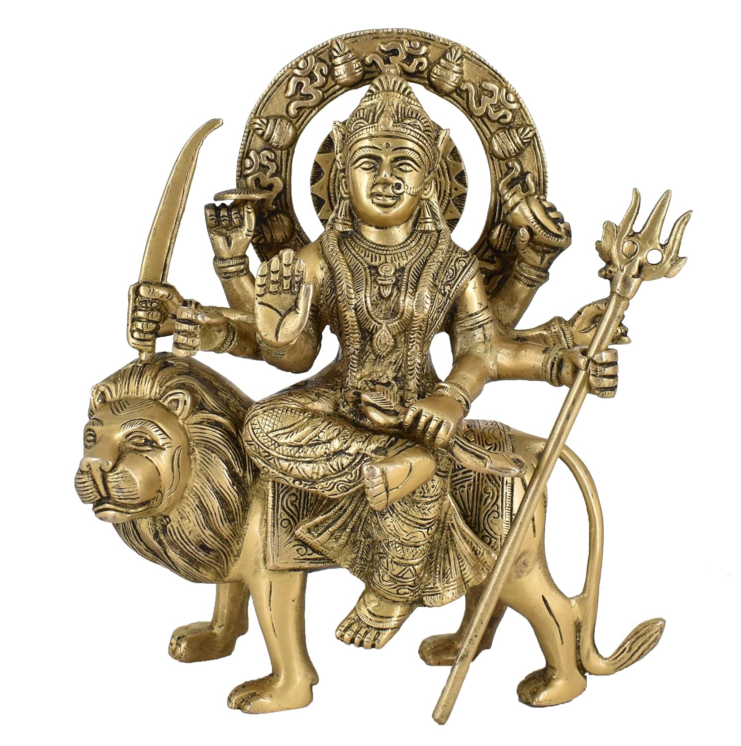 White Whale Brass Maa Durga/Ma Sherwali Idol Sitting On Lion Murti Religious Strength God Sculpture Idol