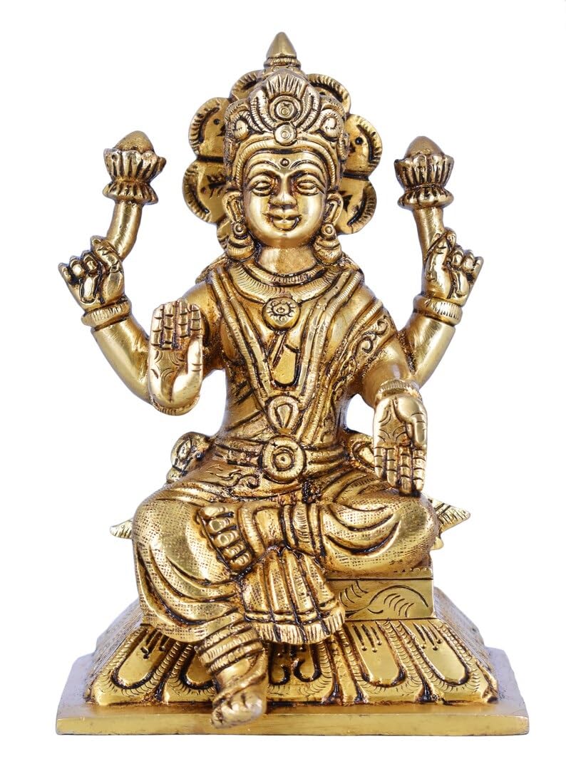 Whitewhale Hindu Goddess Maa Laxmi Idol Brass Statue Standing in Loltus Lakshmi for Temple Puja Home Decor Murti Office Gift Item Showpiece