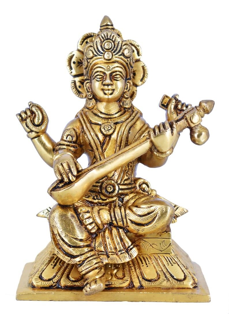 Whitewhale Maa Saraswati Brass Statue Religious Goddess Sculpture Idol Home Decor