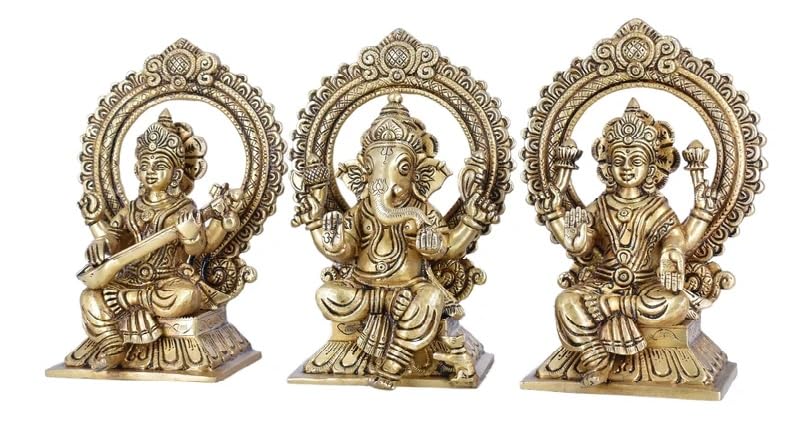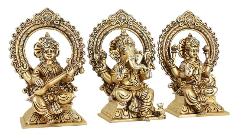 Ganesha Statue Goddess Lakshmi Statue Saraswati Statue in Brass Laxmi Ganesh Saraswati Idol Figurine Hindu Gods of Good Luck Wealth Wisdom
