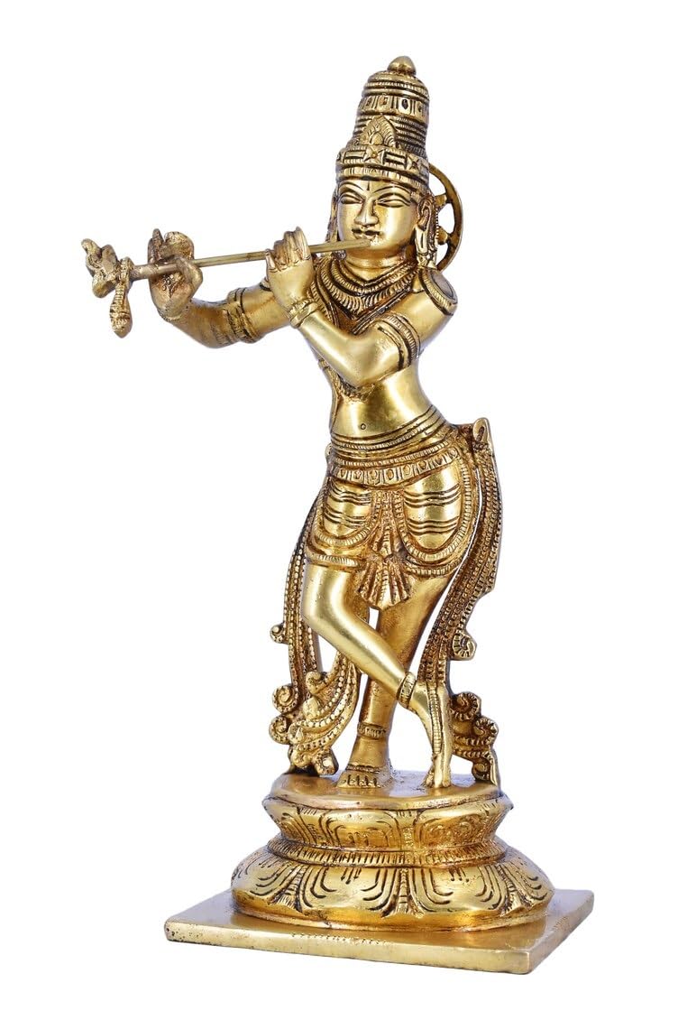 White Whale Radha Krishna Statue Hindu Gods Sculpture Brass
