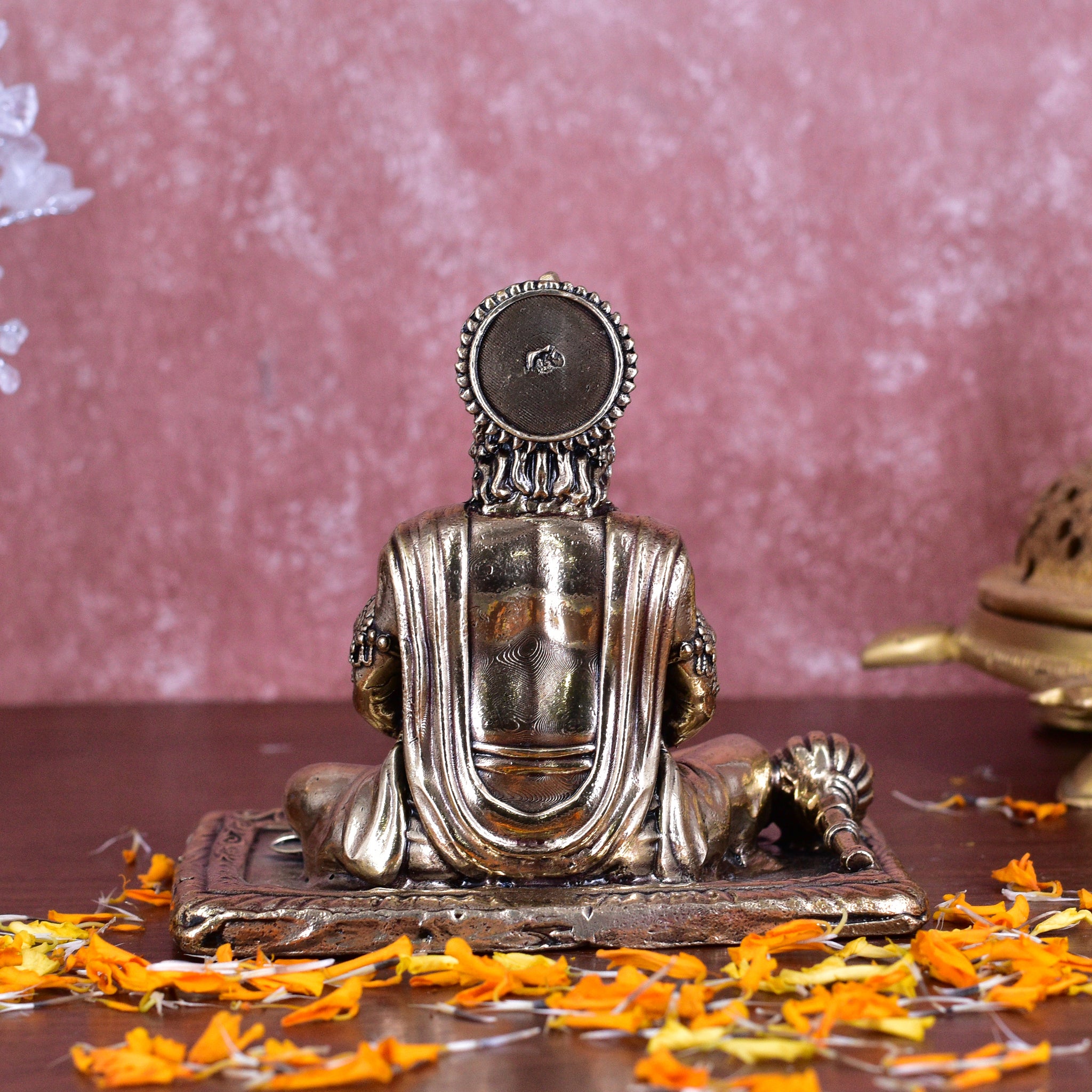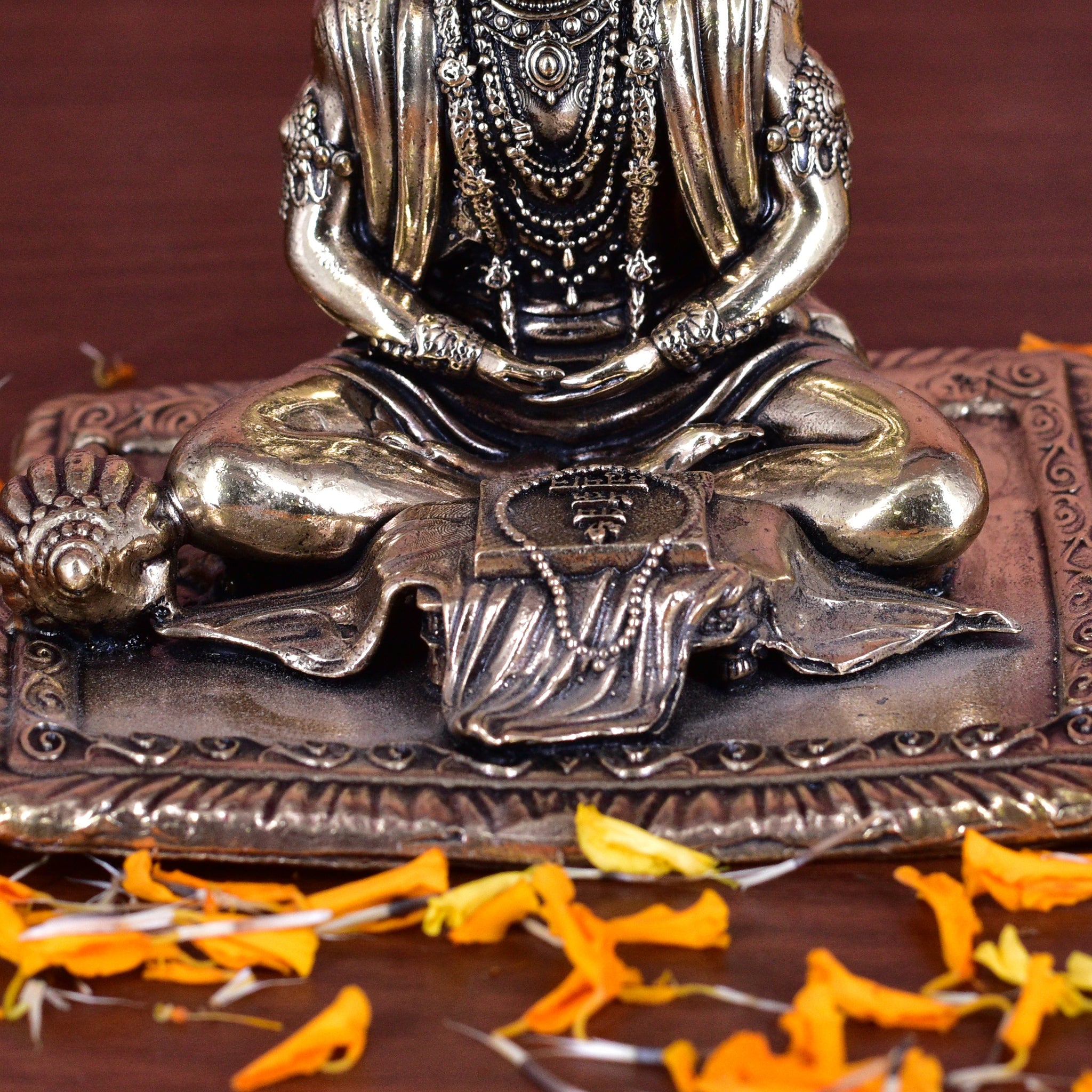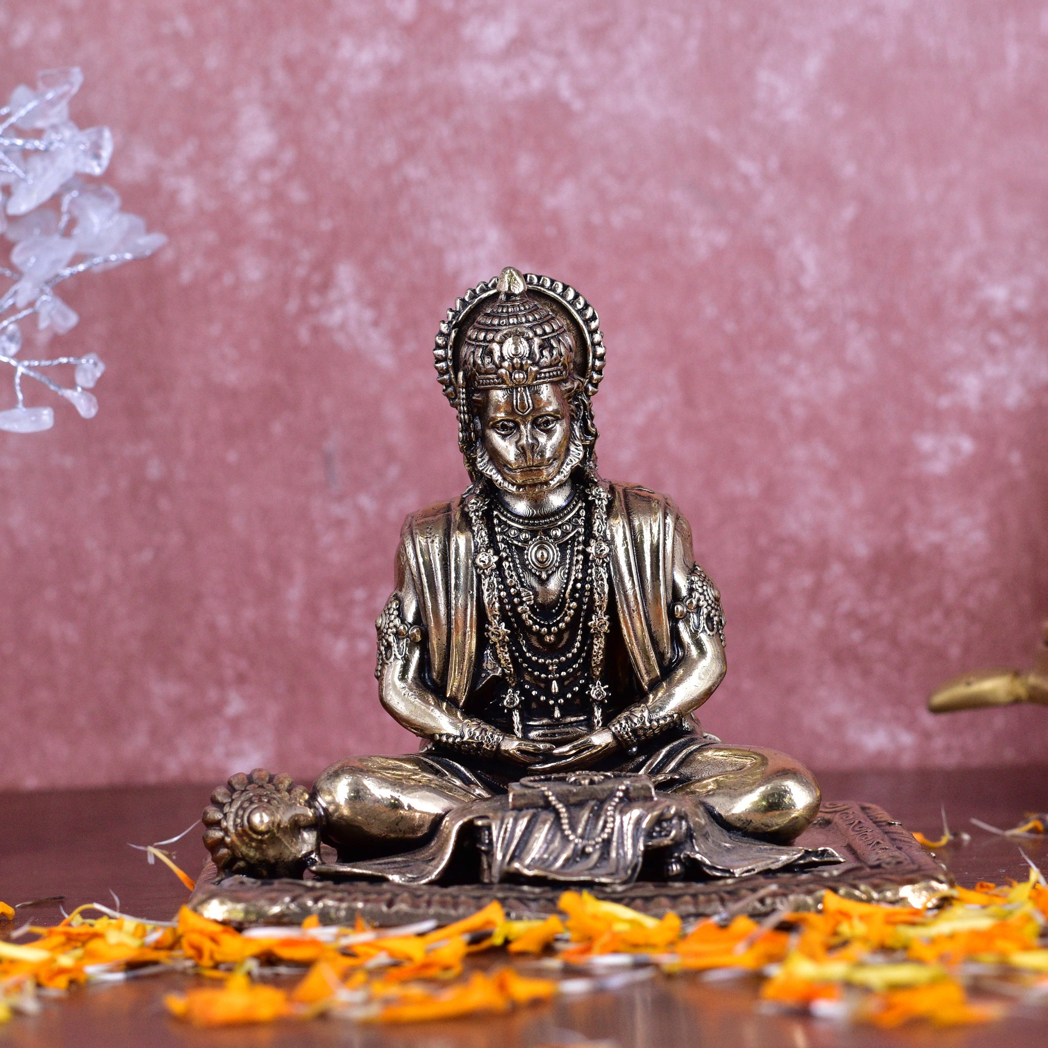 White Whale Suprefine Brass Hanuman Statue Strength Monkey Lord Bajrang Bali Idol Sitting Position Brass Sculpture Diwali Decor Gifts