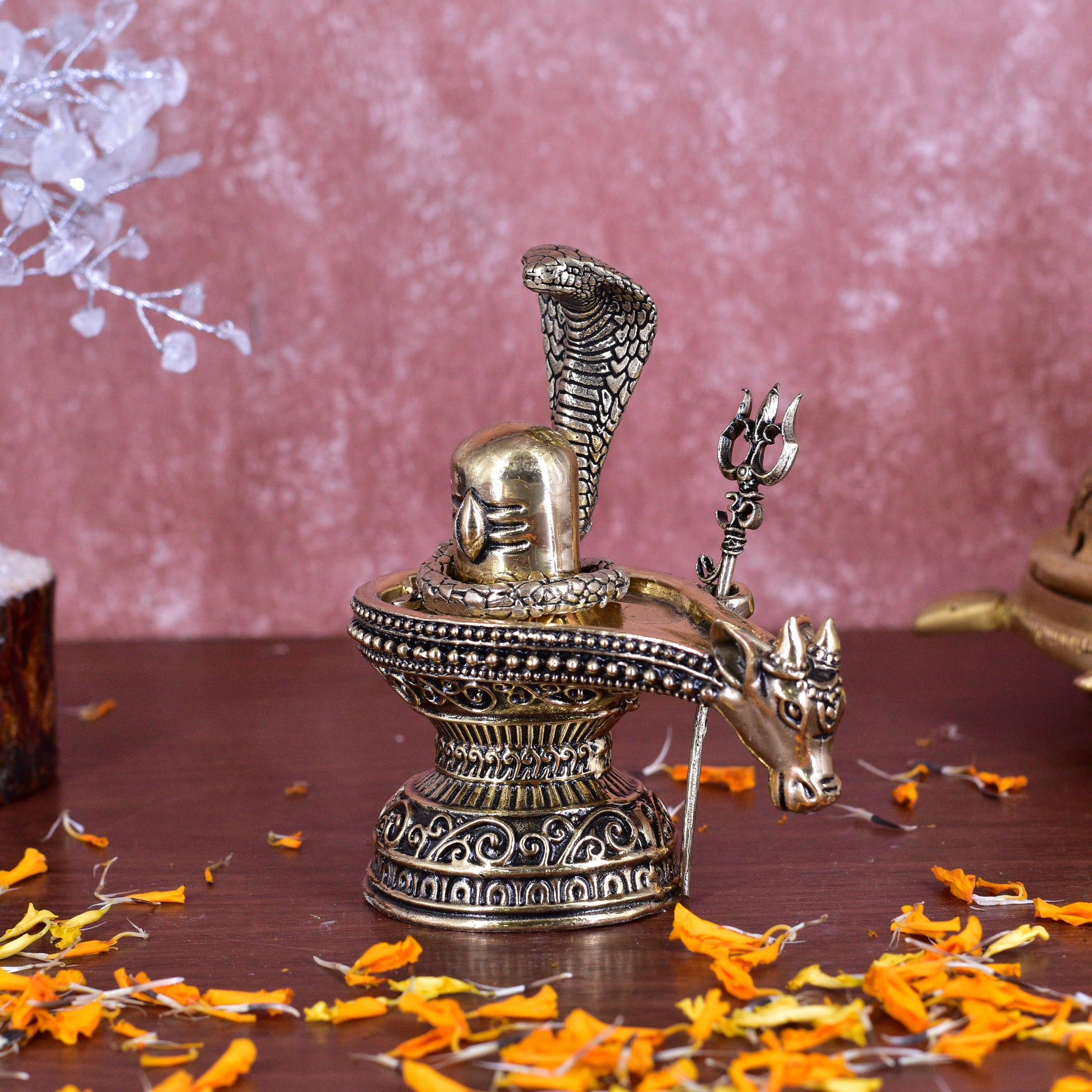 White Whale Superfine Gold Brass Lord Shiva Lingam With Nandi Sculpture Shivling Statue.