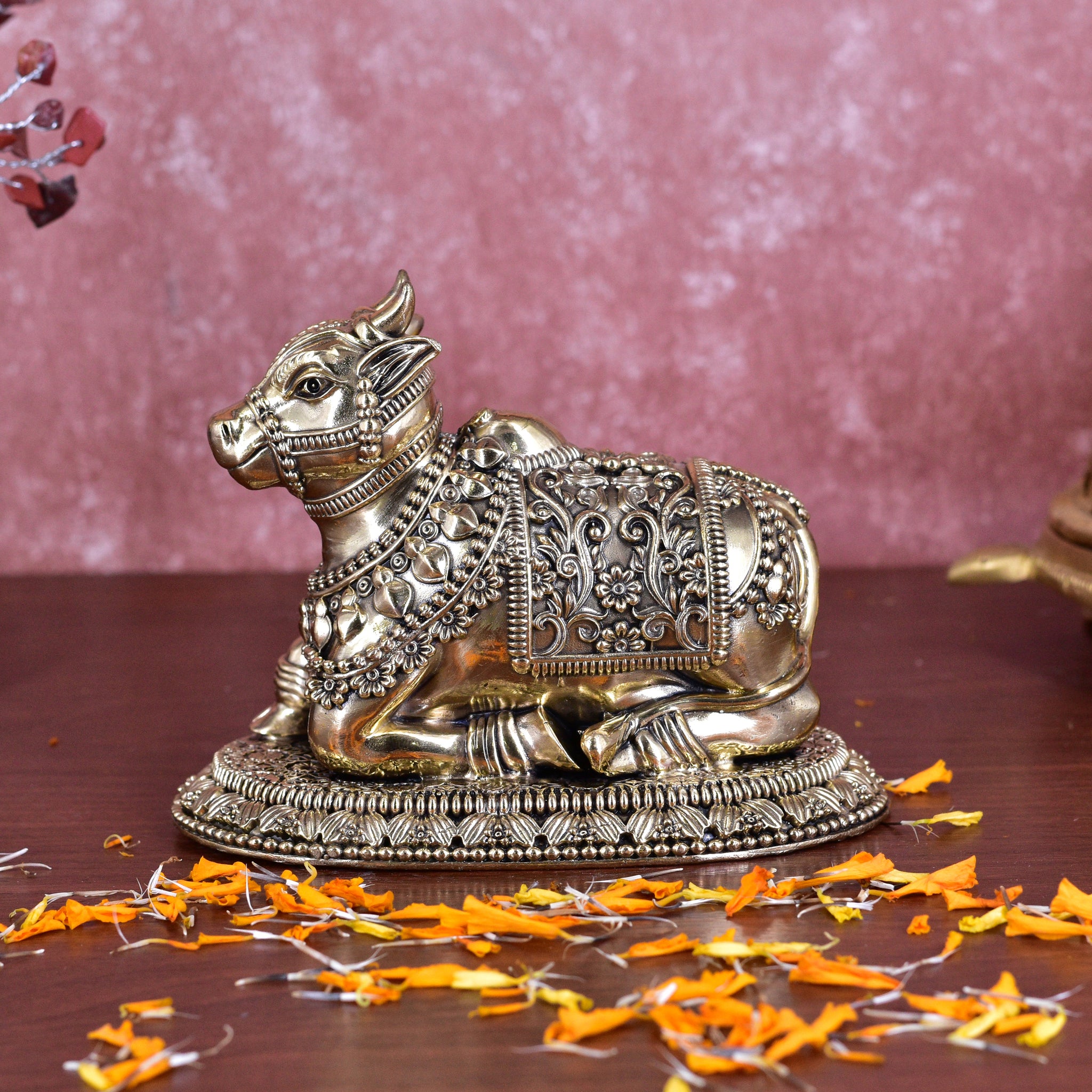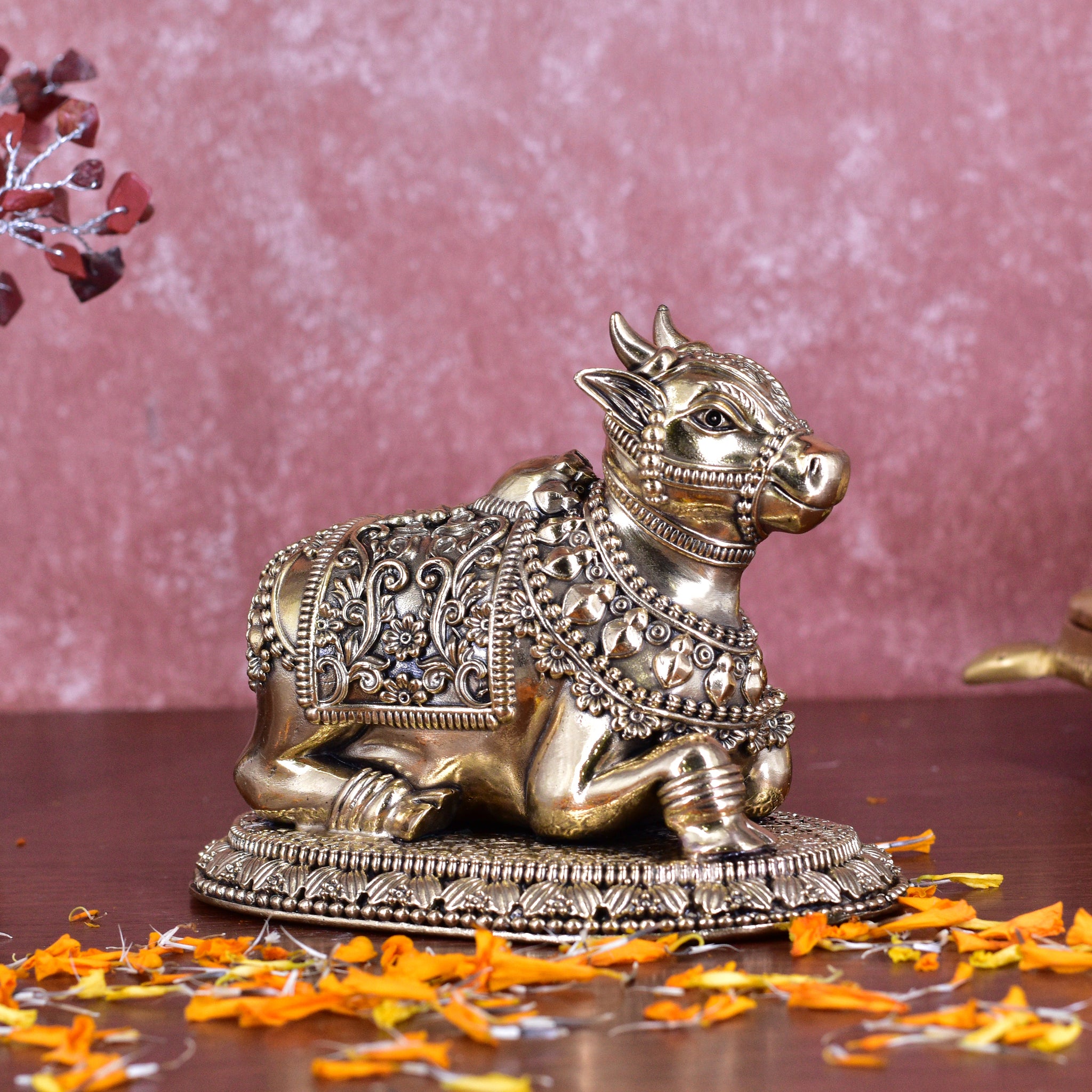 White Whale Superfine Little Brass Shiva Nandi Statue | Murti for Home Decoration | Office Décor
