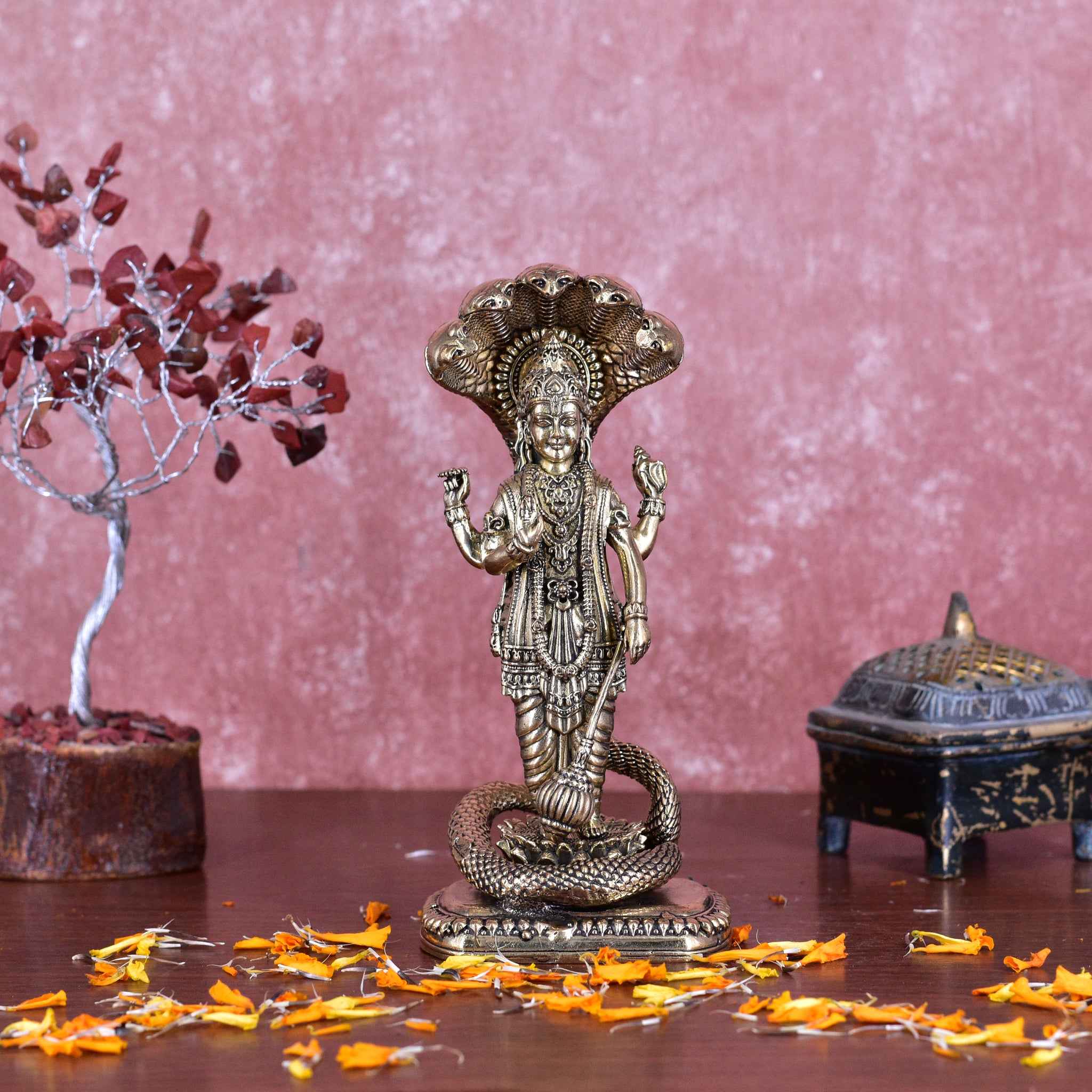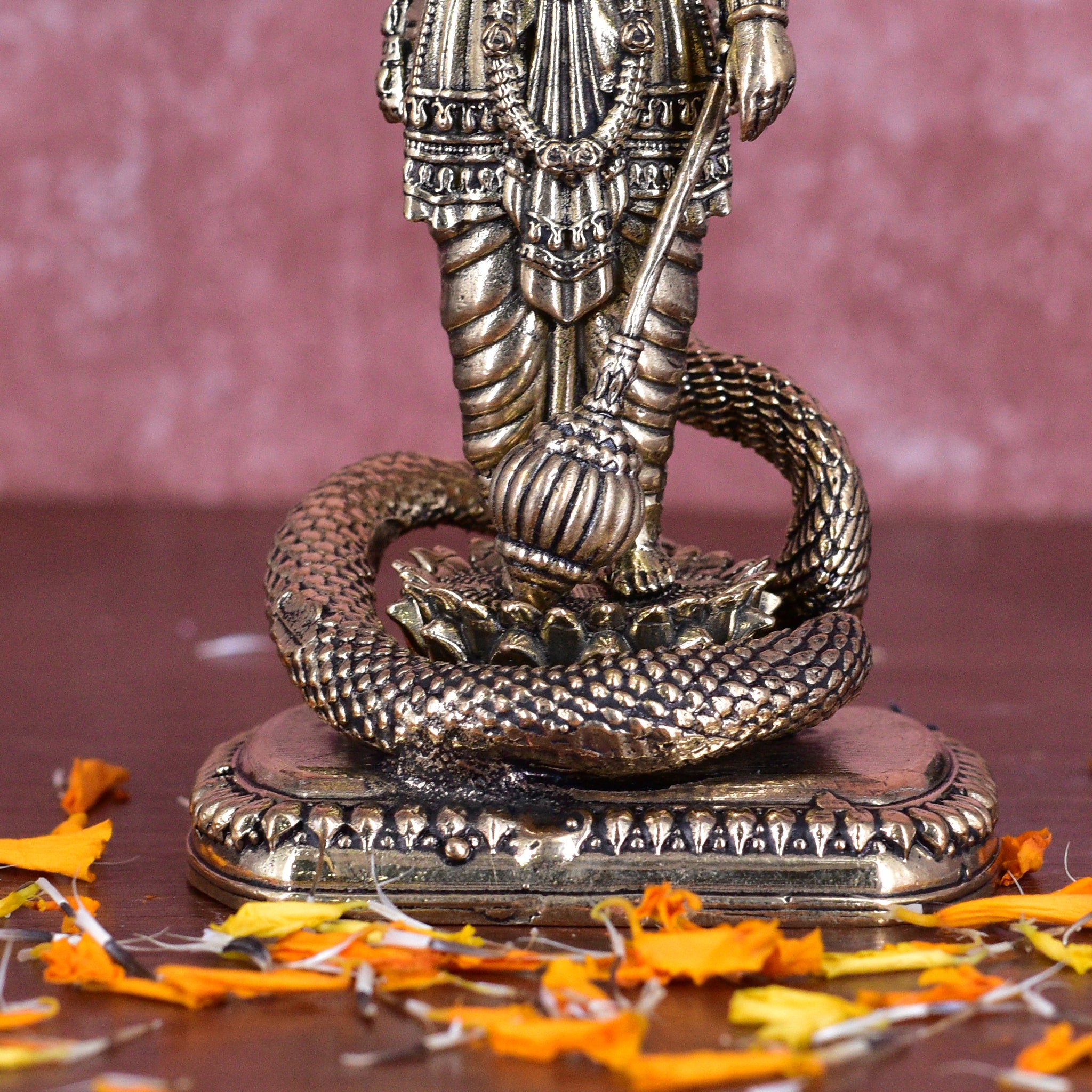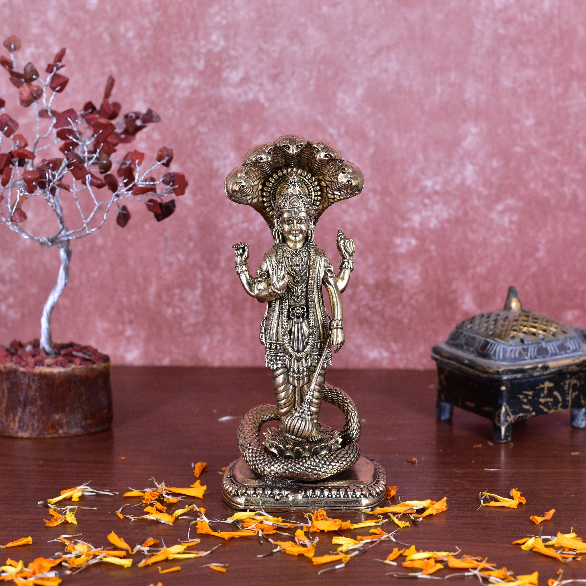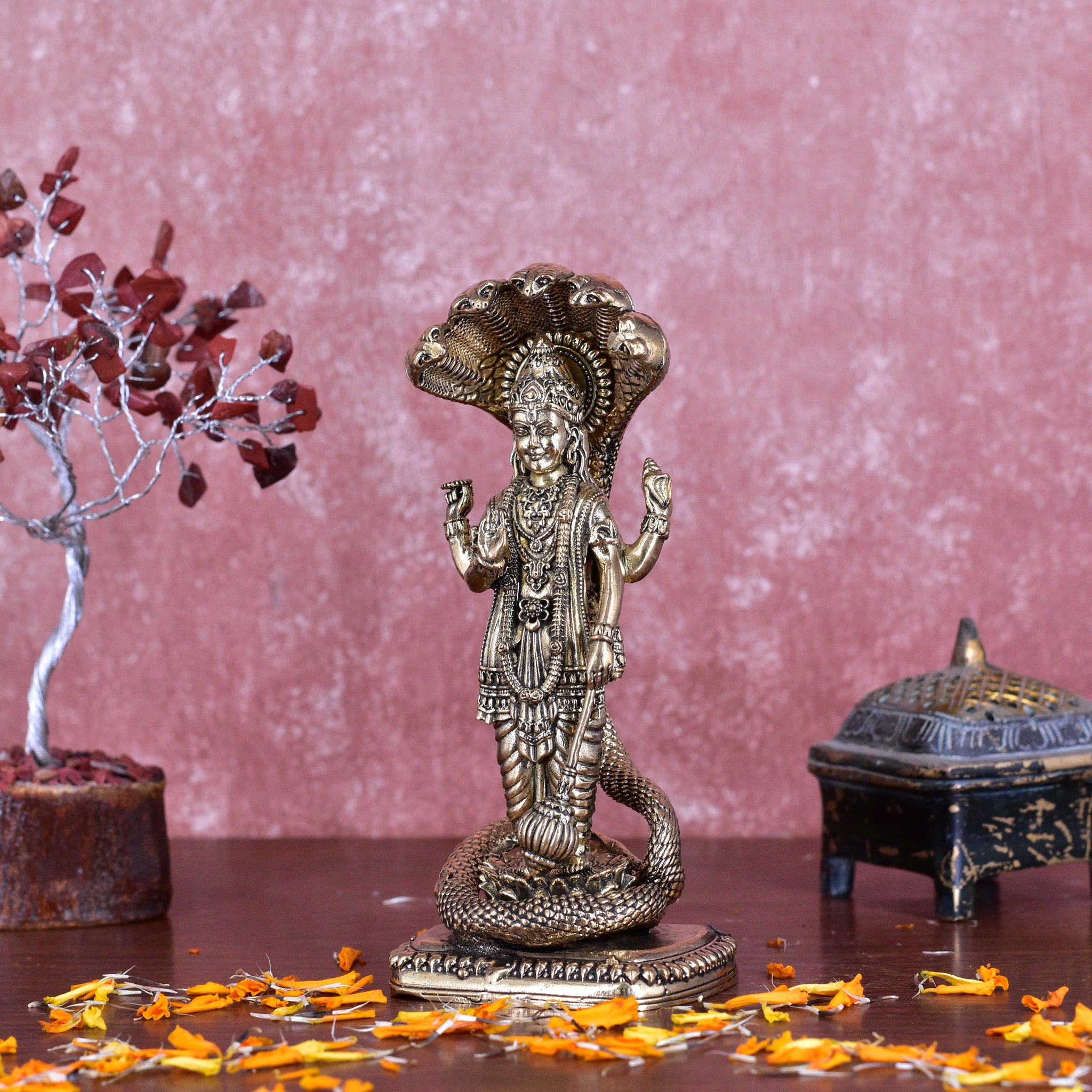 White Whale Superfine Brass Hindu God Lord Vishnu Bhagwan With Sheshnaag Lord Vishnu Idol Statue Murti